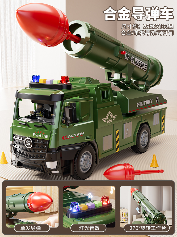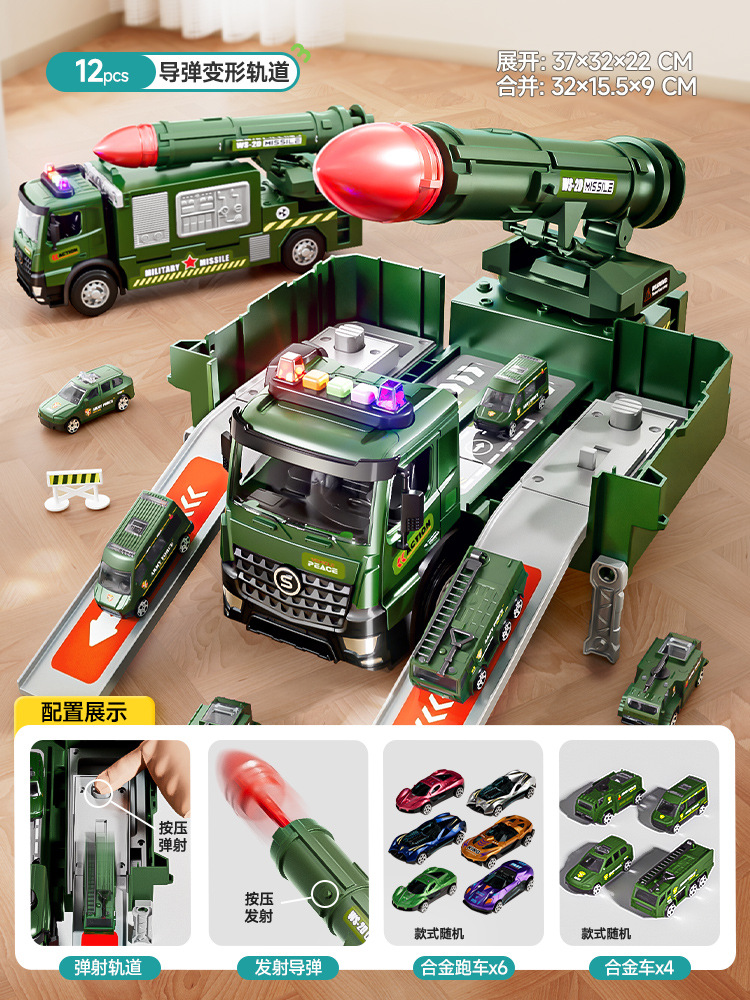 • 샘과 같은 모델 - 조명 및 음향 효과/저장실/대륙간 미사일을 갖춘 변형 저장 미사일 차량 [합금 군용 차량 6대 + 합금 차량 6대]