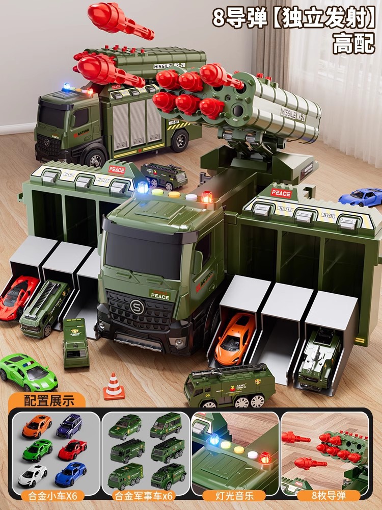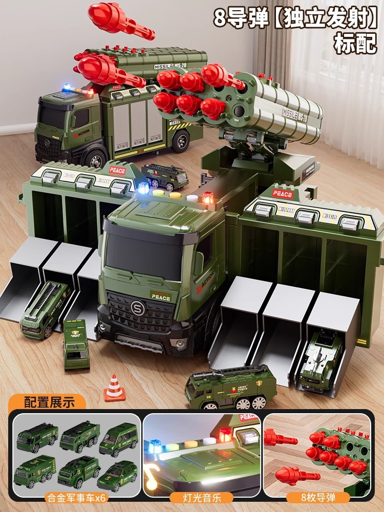 • 샘과 동일한 모델 - 조명 및 음향 효과/저장실/8발 미사일을 갖춘 다중 미사일 독립 발사 [합금 군용 차량 6대 + 합금 차량 6대]