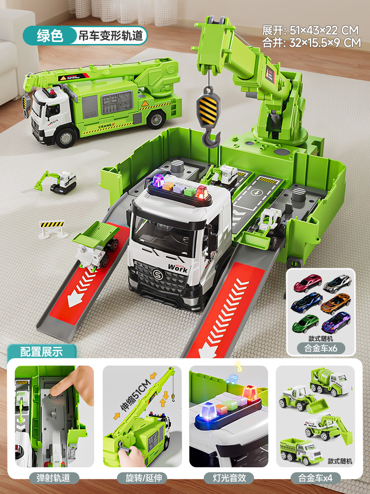• 샘 같은 스타일 [변형 + 6칸 배출] 초대형 크레인 - 그린 '합금차량 6대'