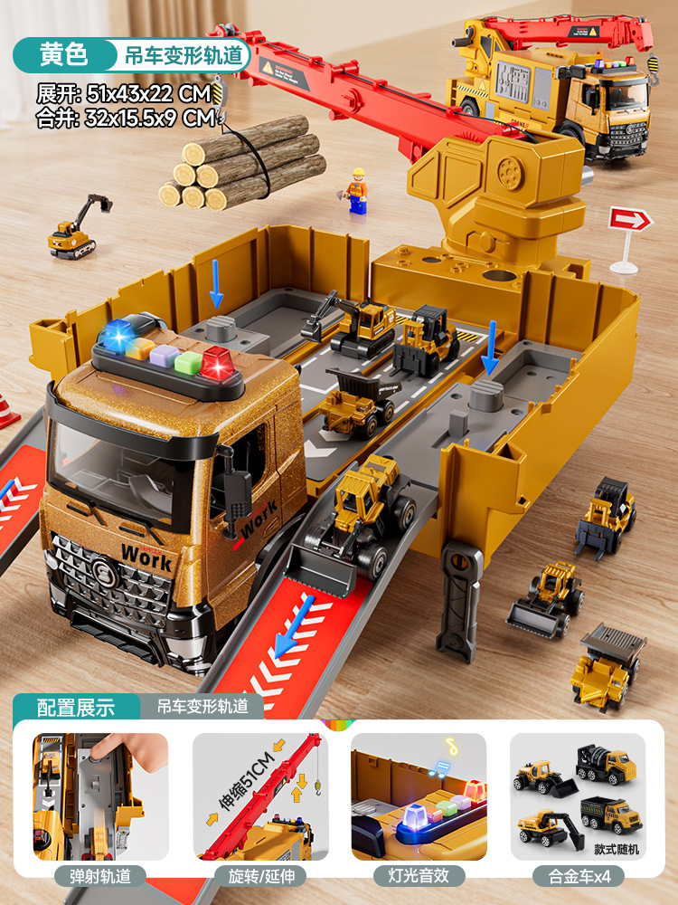 • [변형 + 이중 레일 배출] 크레인 크레인 - 노란색 '합금차량 4대'