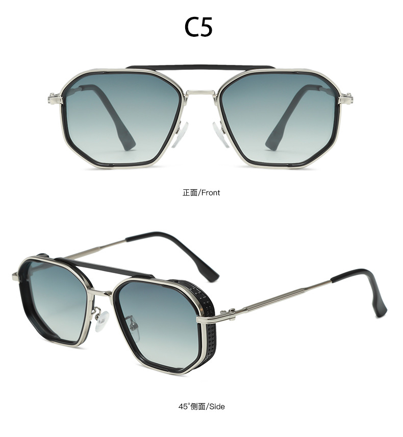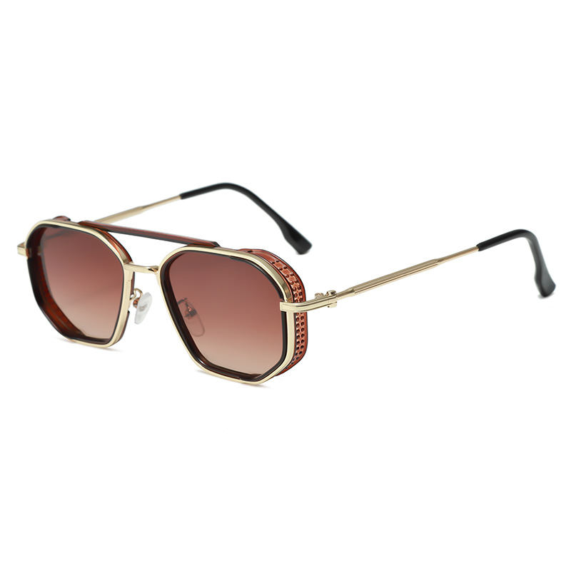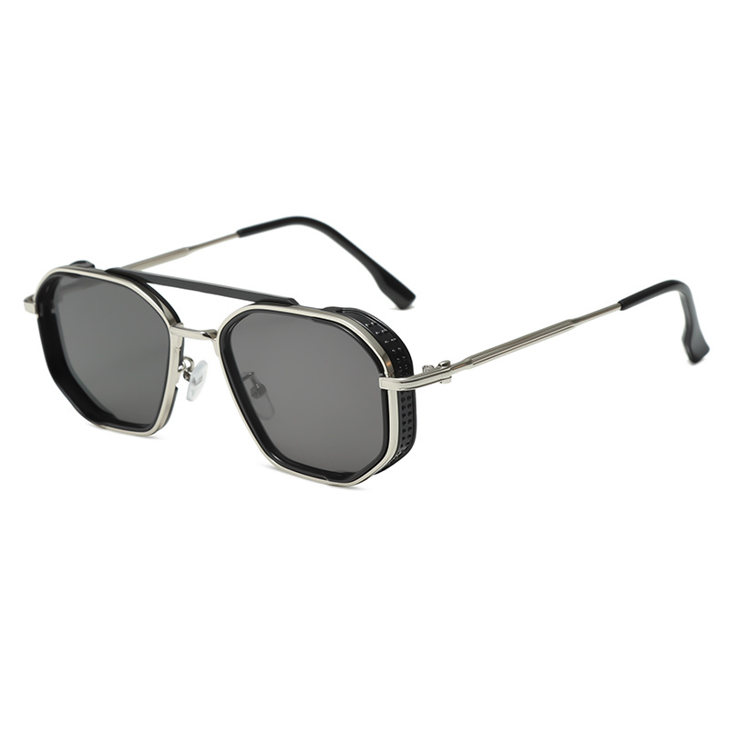 크로스-국경 더블 빔 금속 펑크 선글라스 남성과 여성의 레트로 인 스타일 유럽과 미국의 잉크 폴리곤 맞춤형 안경