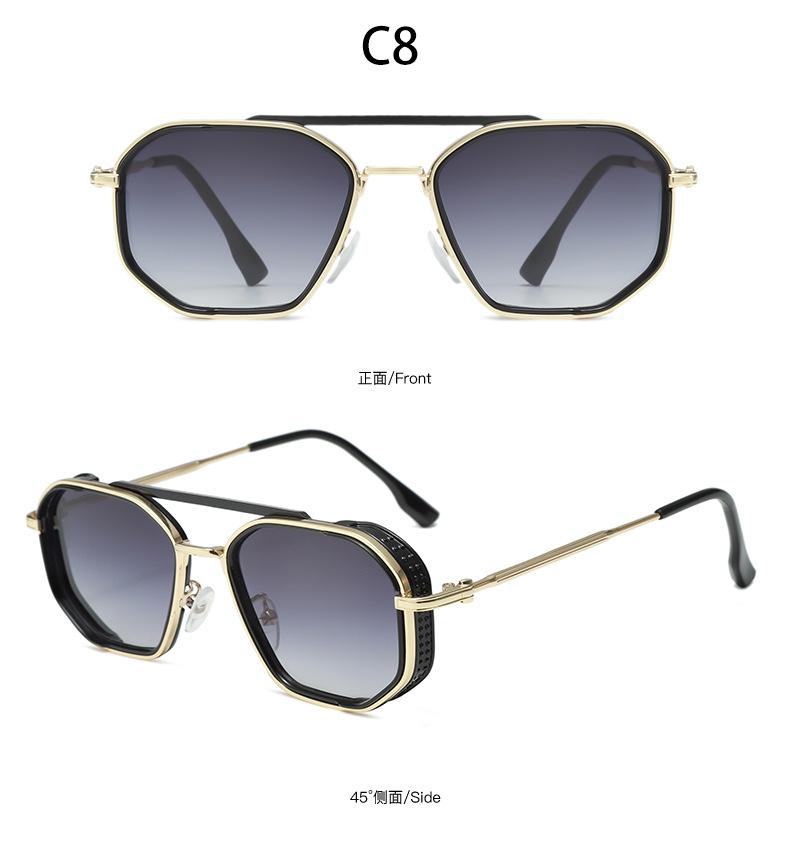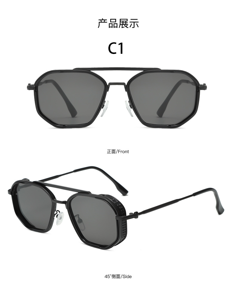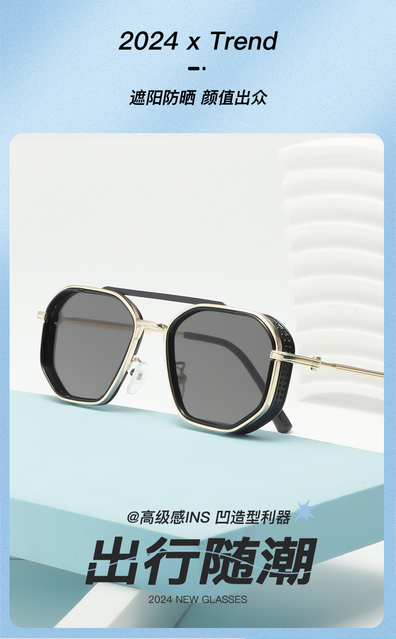 크로스-국경 더블 빔 금속 펑크 선글라스 남성과 여성의 레트로 인 스타일 유럽과 미국의 잉크 폴리곤 맞춤형 안경스토어 가기