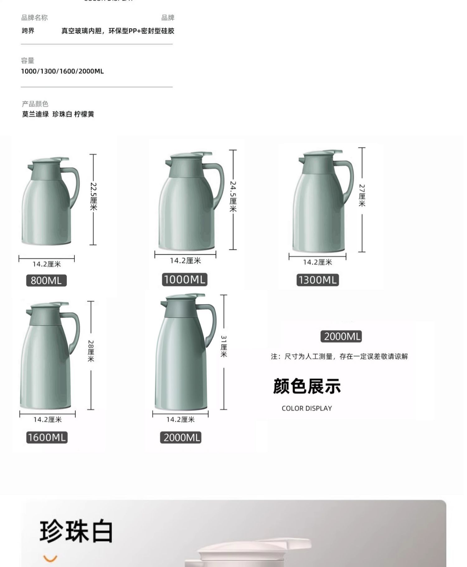 • 두꺼운 모델 - [모란디 그린] 2.0L 내부 탱크는 0.3CM 더 두껍고 보온성이 더 좋습니다.