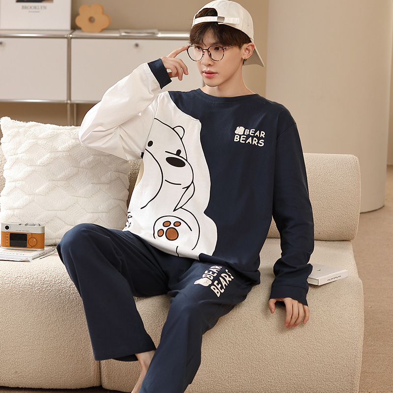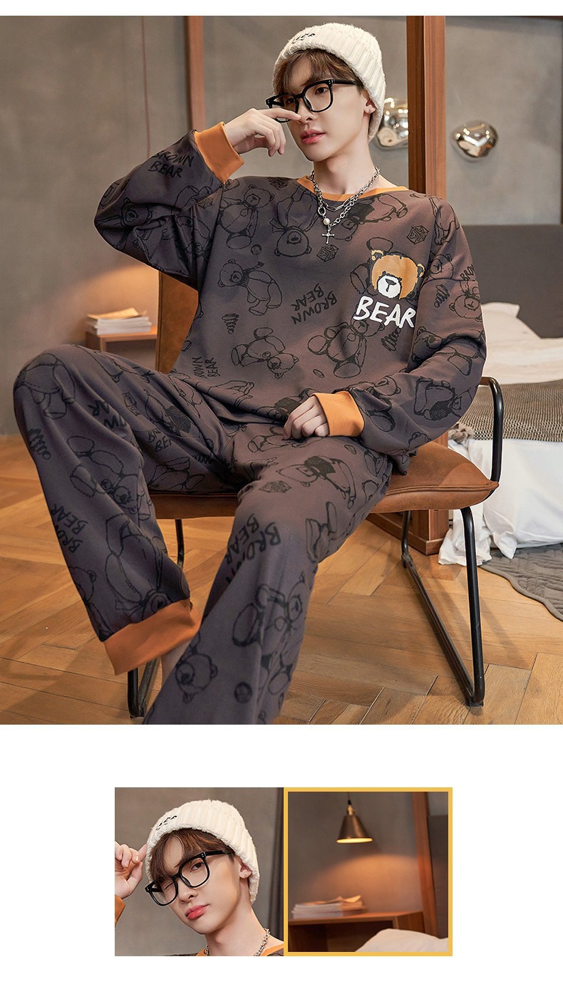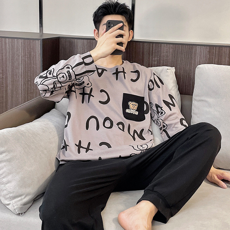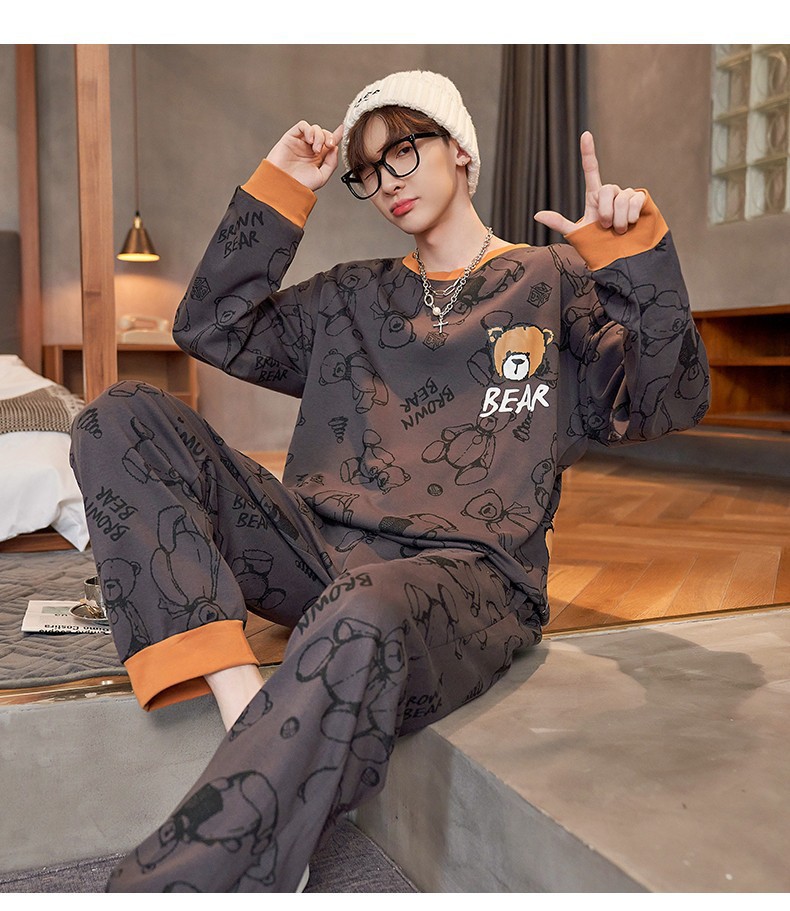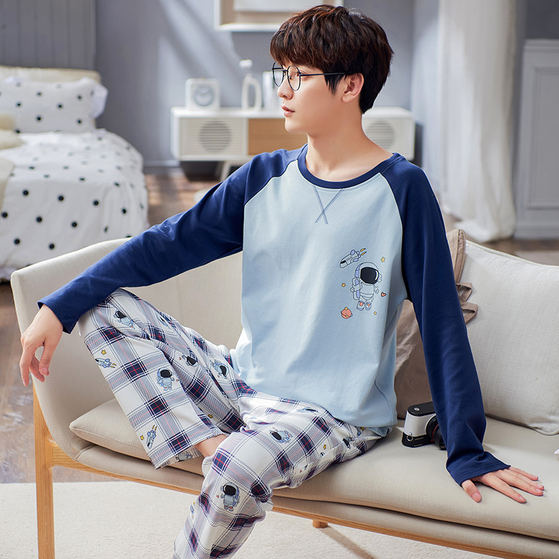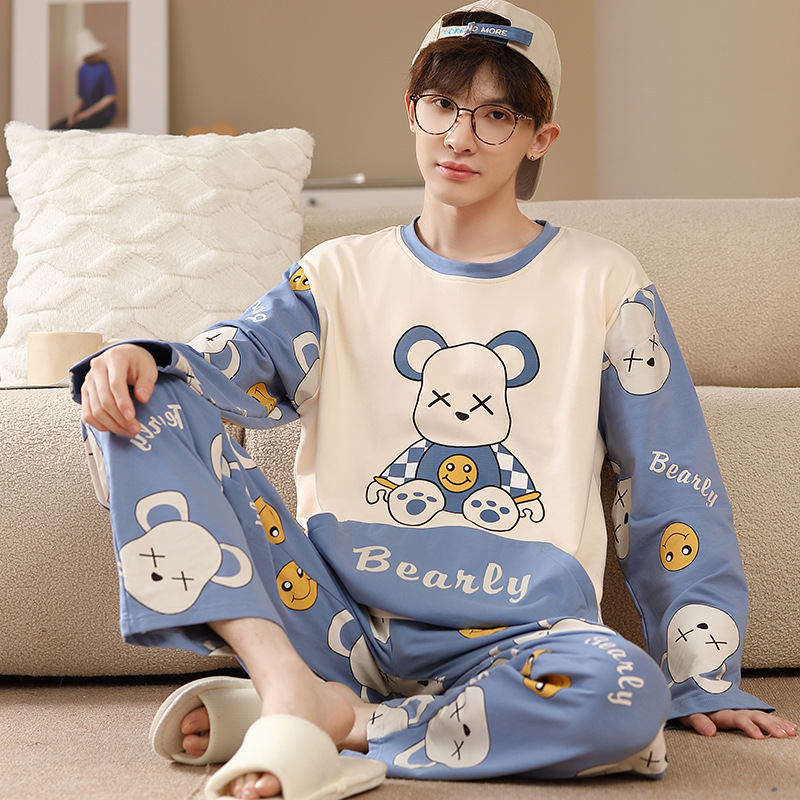 남자 잠옷 봄 · 가을 면 한국식 긴팔 만화 세트 가을 · 겨울 청소년 플러스 사이즈 입고스토어 가기