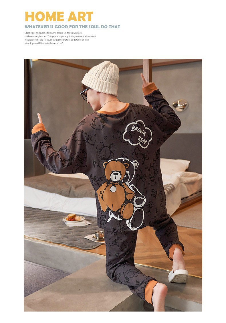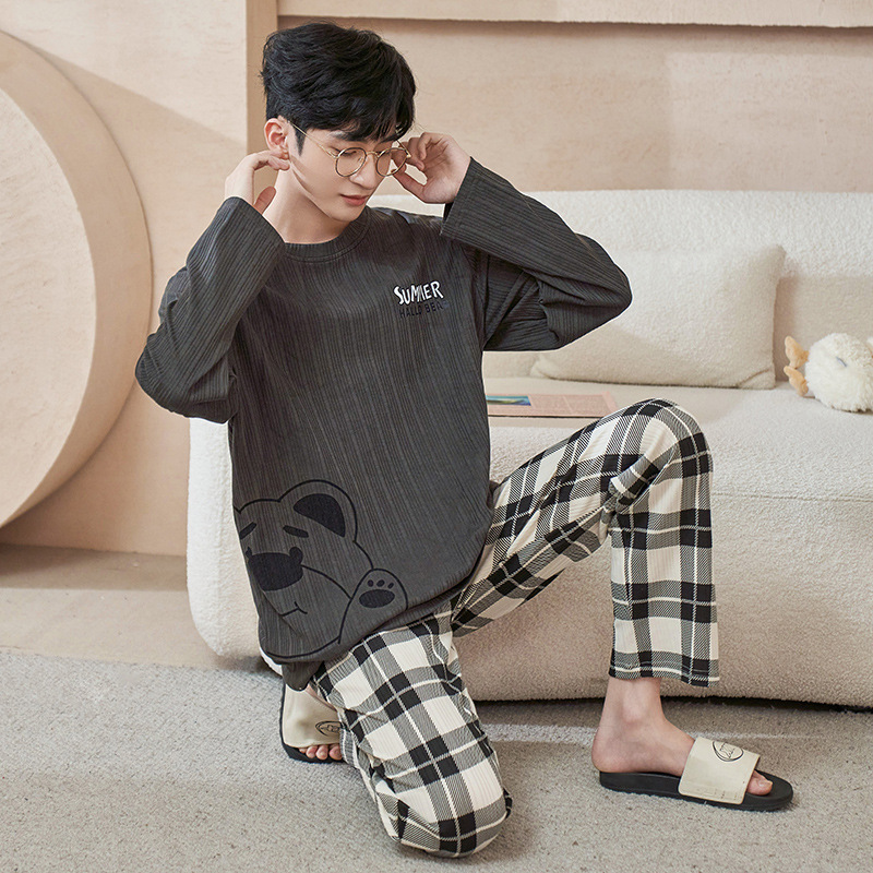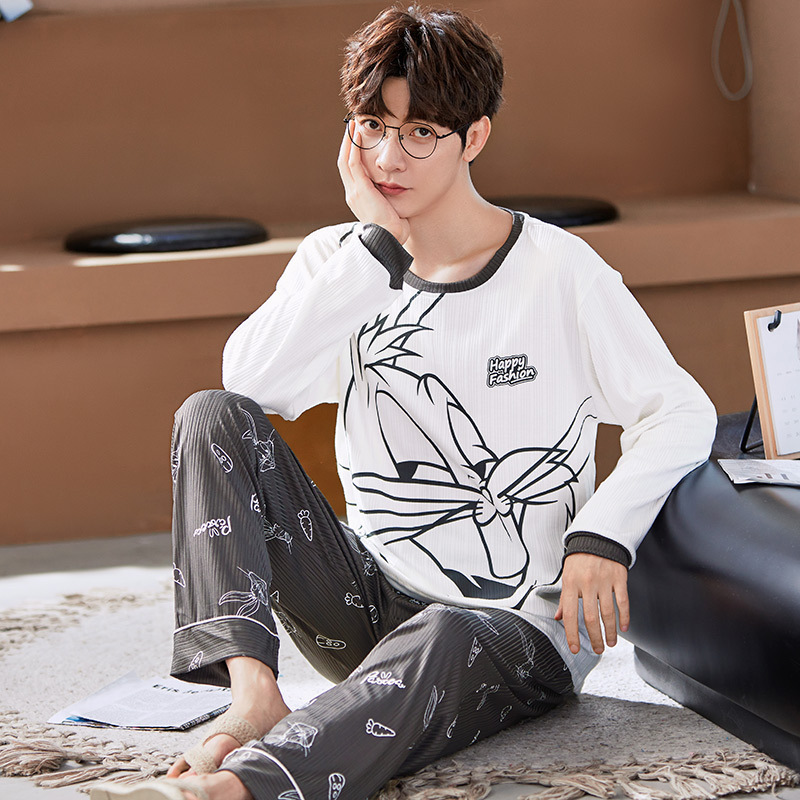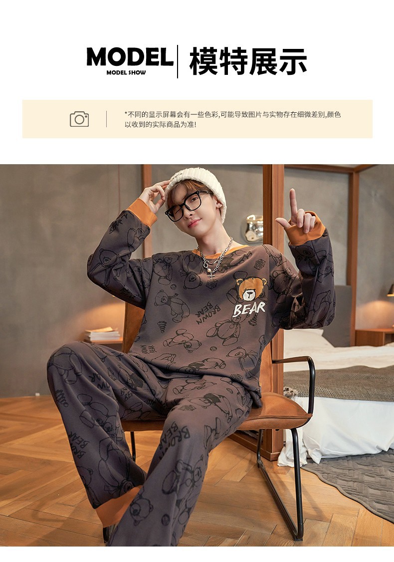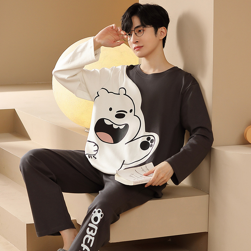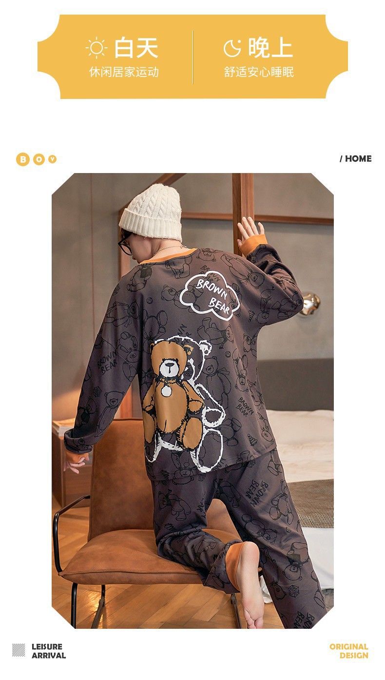 남자 잠옷 봄 · 가을 면 한국식 긴팔 만화 세트 가을 · 겨울 청소년 플러스 사이즈 입고스토어 가기