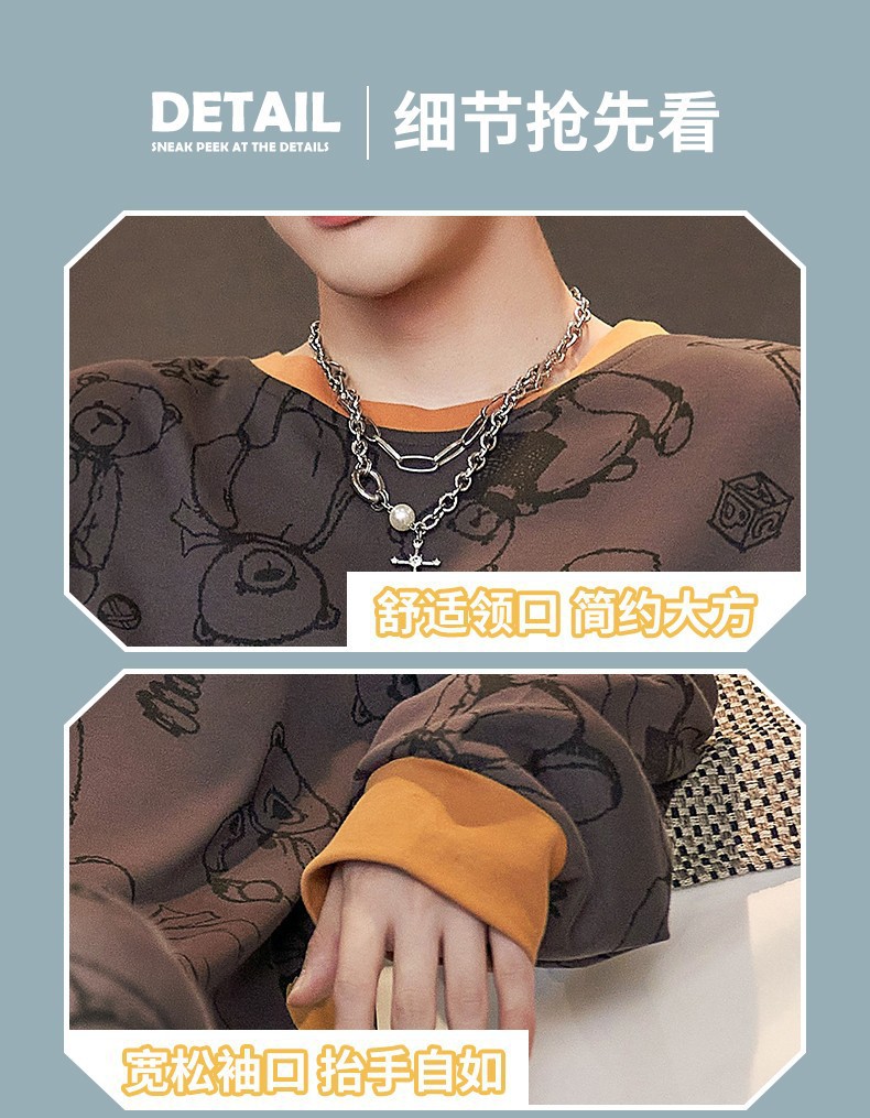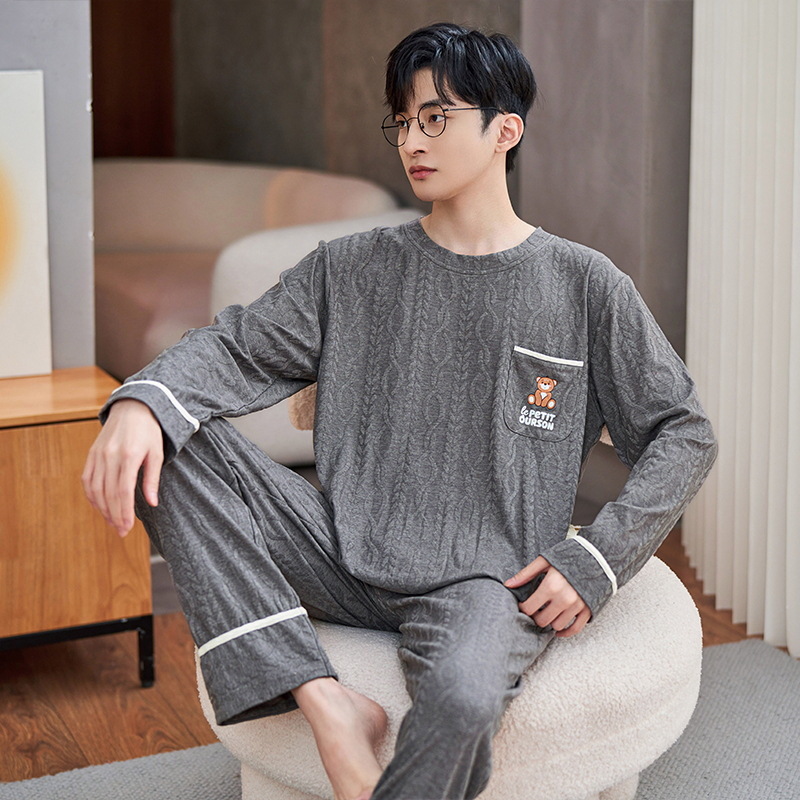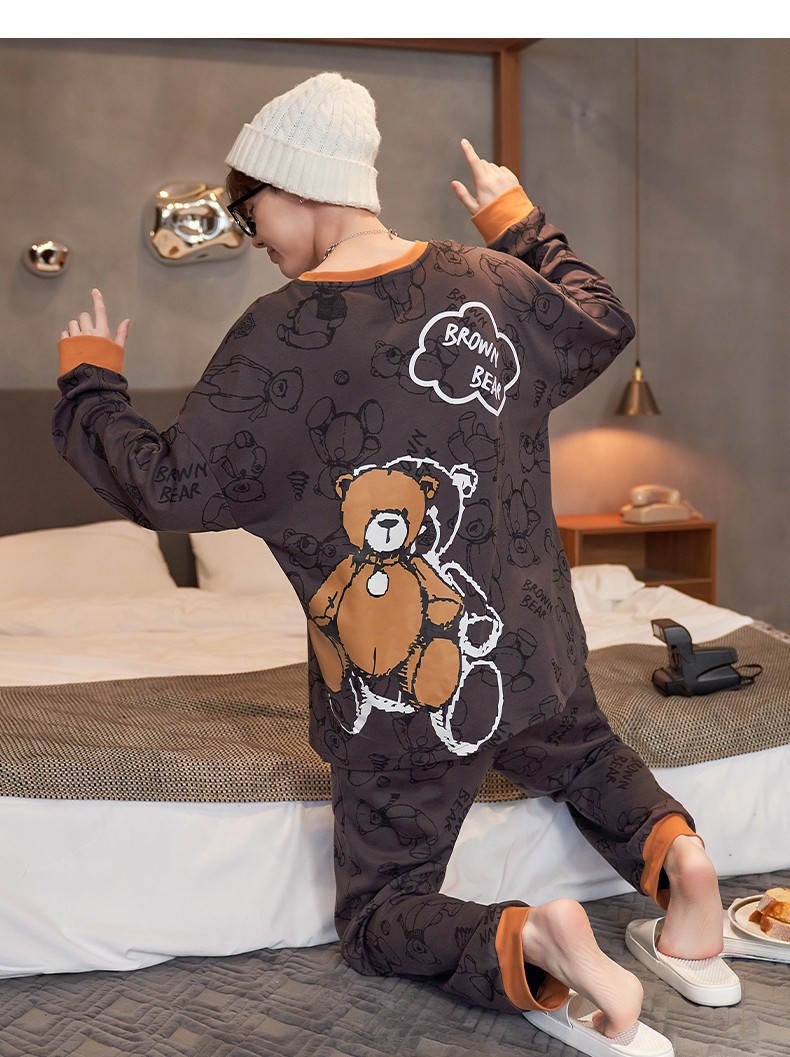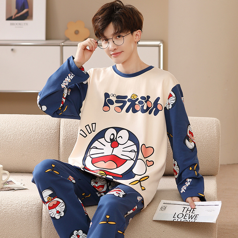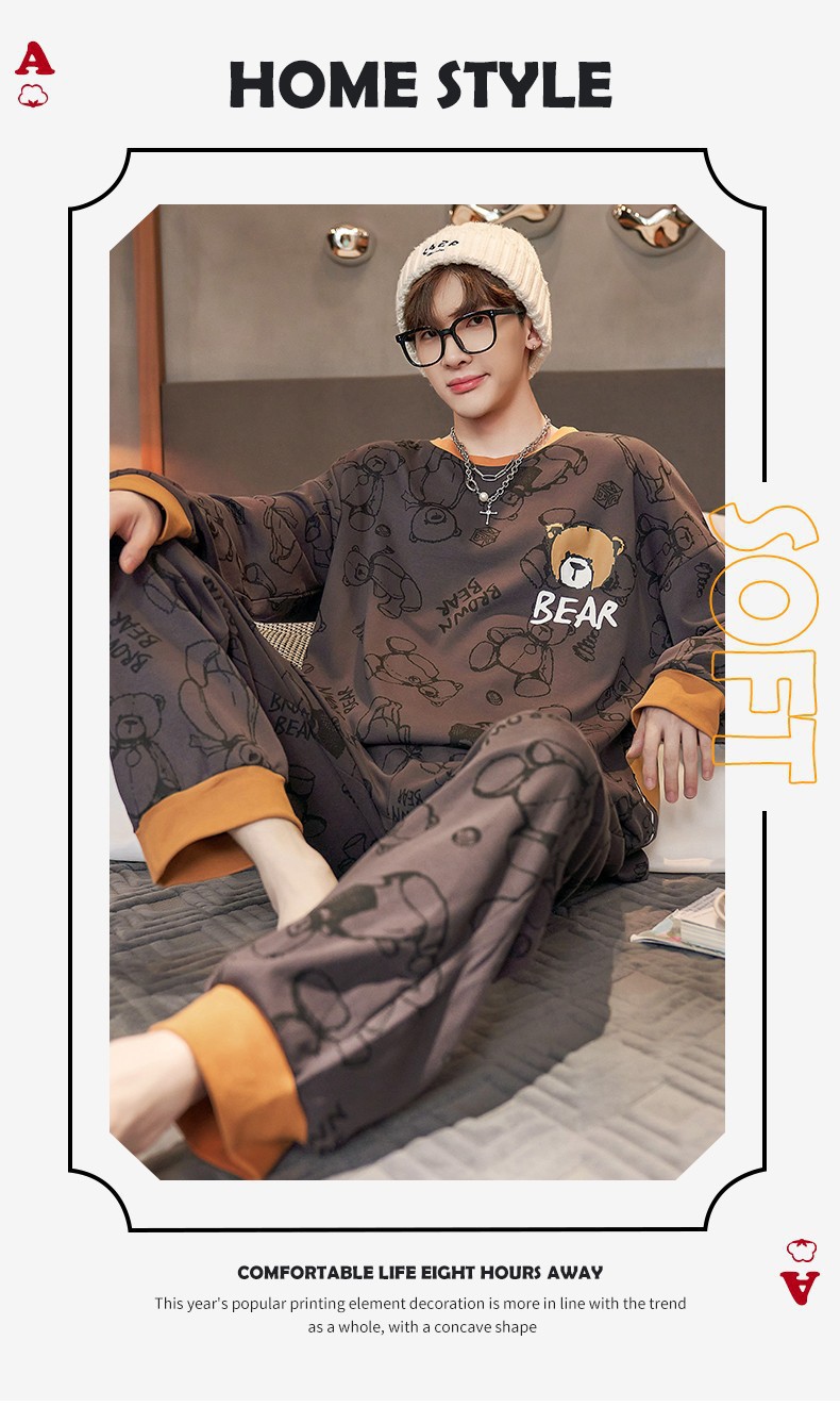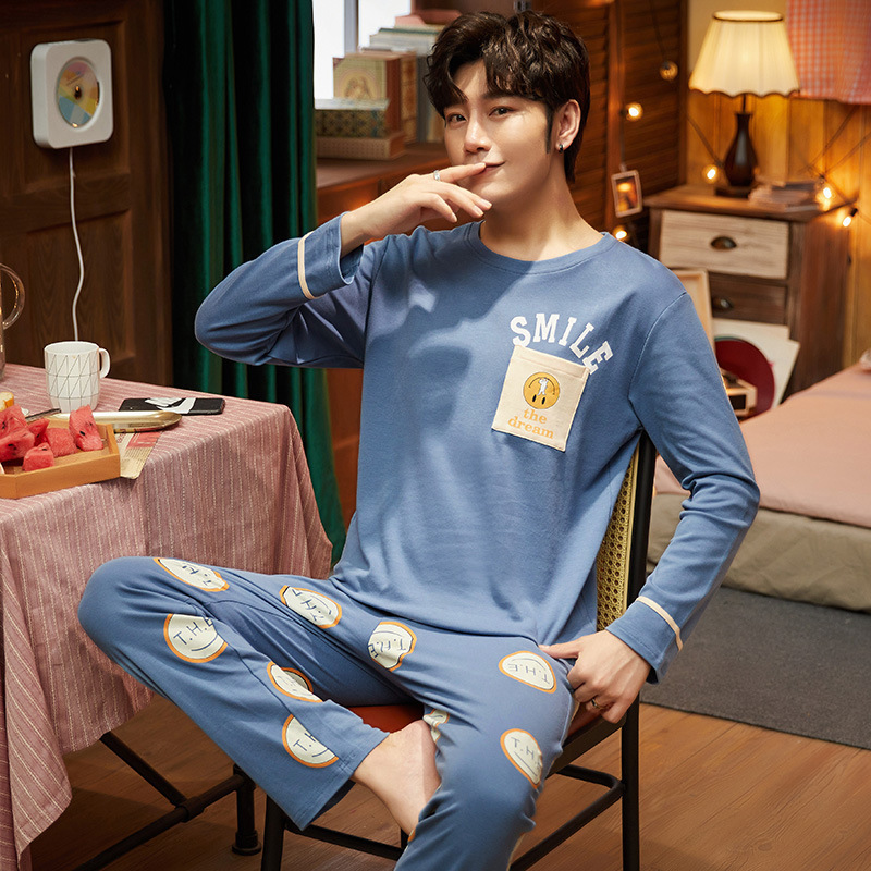 남자 잠옷 봄 · 가을 면 한국식 긴팔 만화 세트 가을 · 겨울 청소년 플러스 사이즈 입고스토어 가기