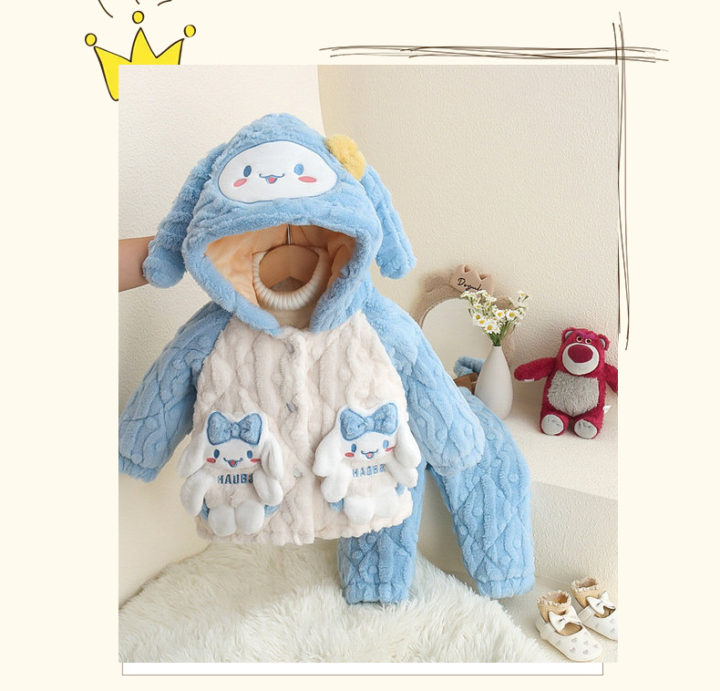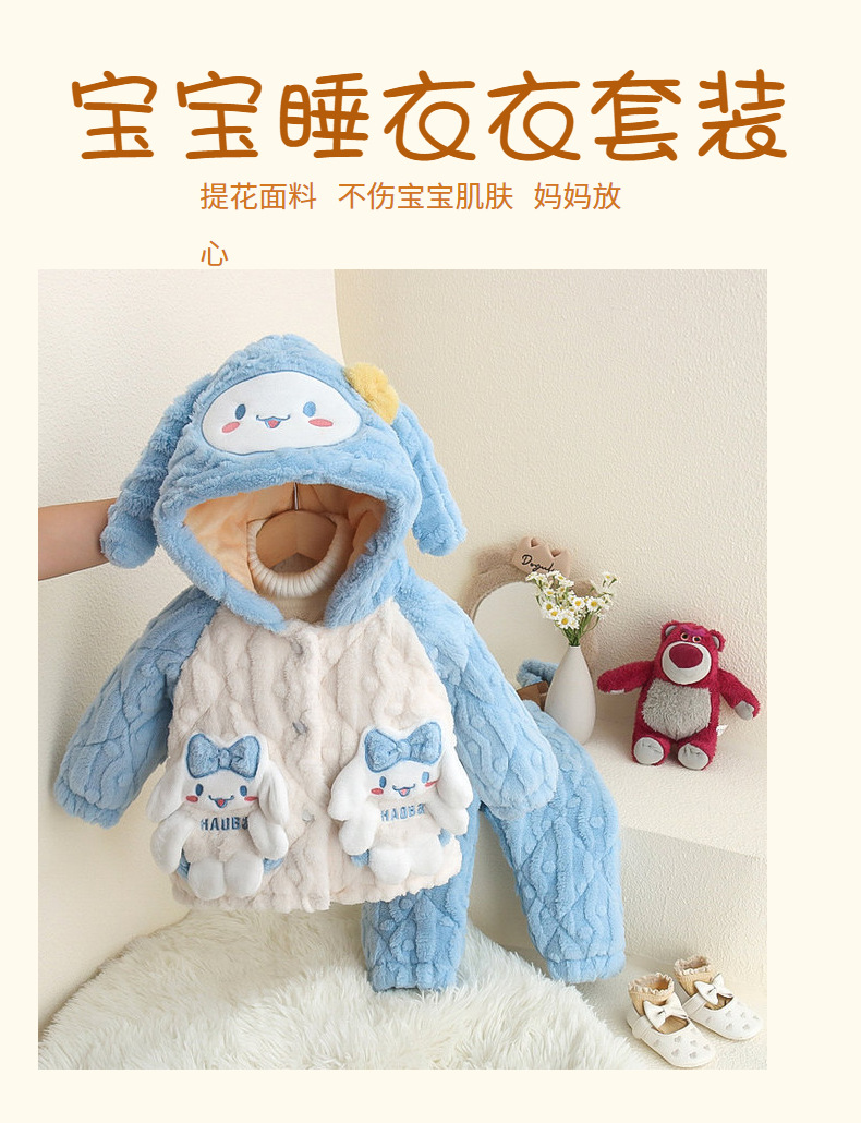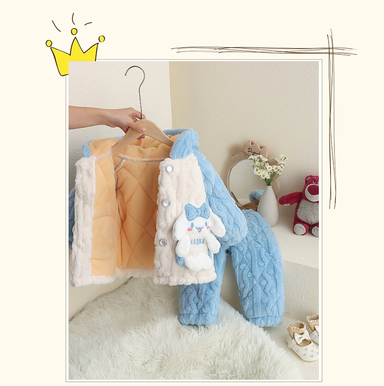Cotton 및 Velvet Pajamas가있는 어린이 투피스 세트 소녀 2024 겨울 만화 플란넬 세트 홈스토어 가기