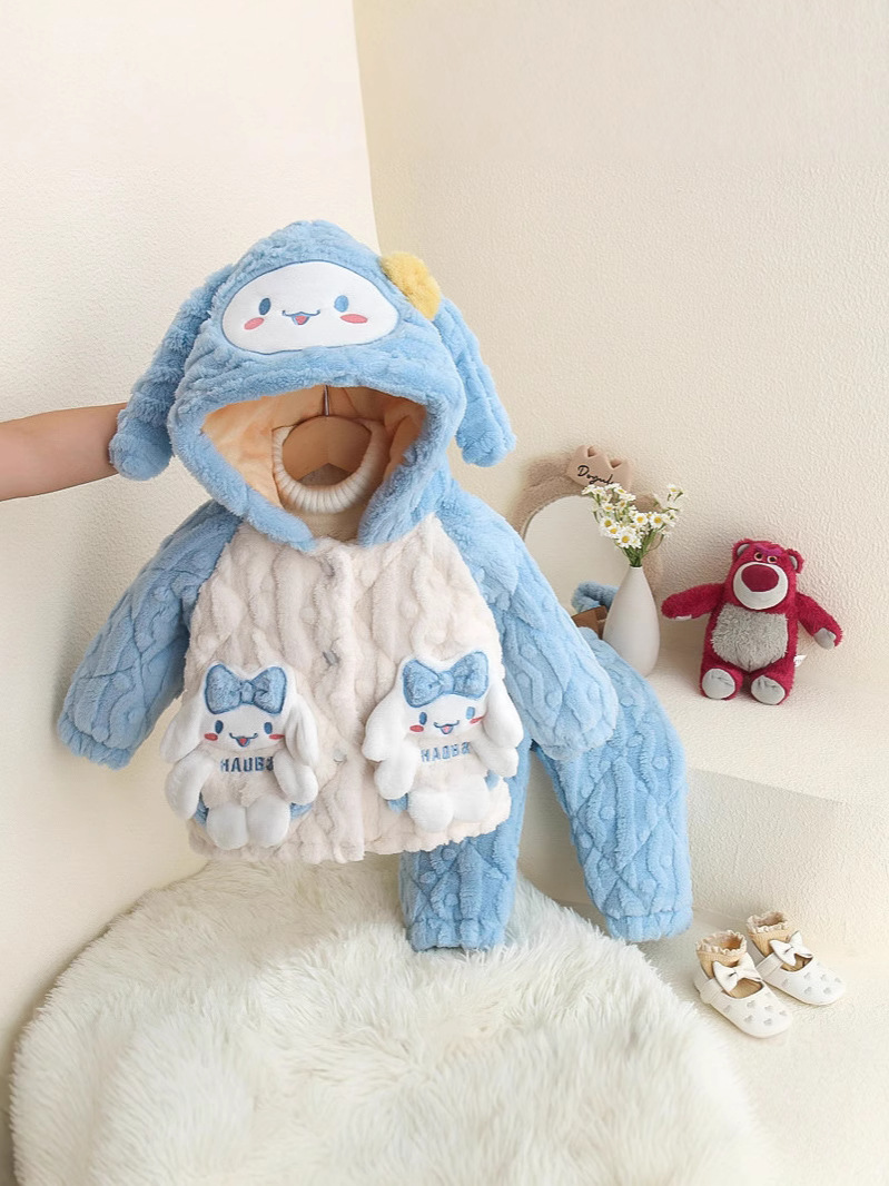 Cotton 및 Velvet Pajamas가있는 어린이 투피스 세트 소녀 2024 겨울 만화 플란넬 세트 홈