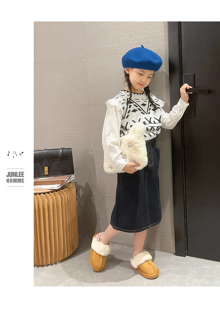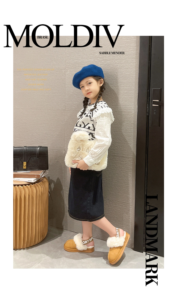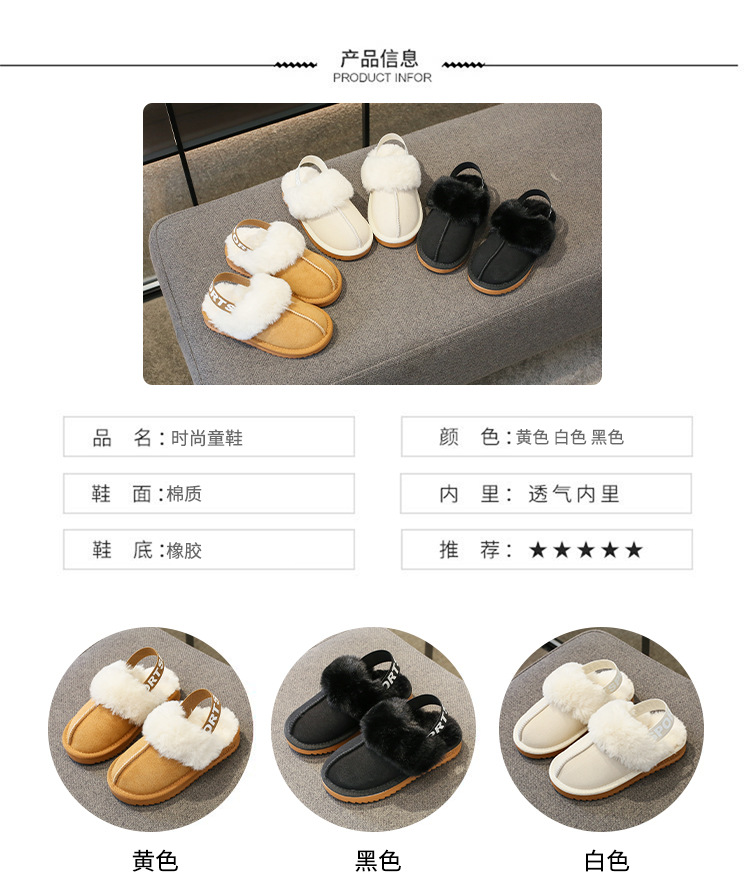 여아용 털 슬리퍼 2023 가을 겨울 신상 아동화 따뜻한 면 슬리퍼 캐주얼 부드러운 밑창 미끄럼 방지 외출용스토어 가기
