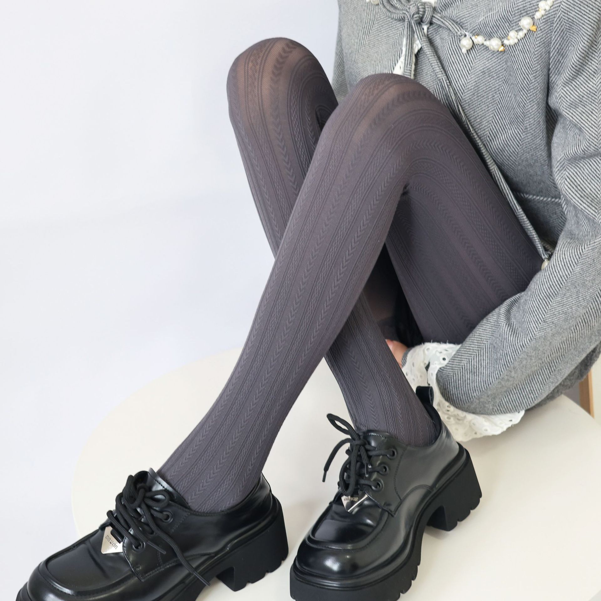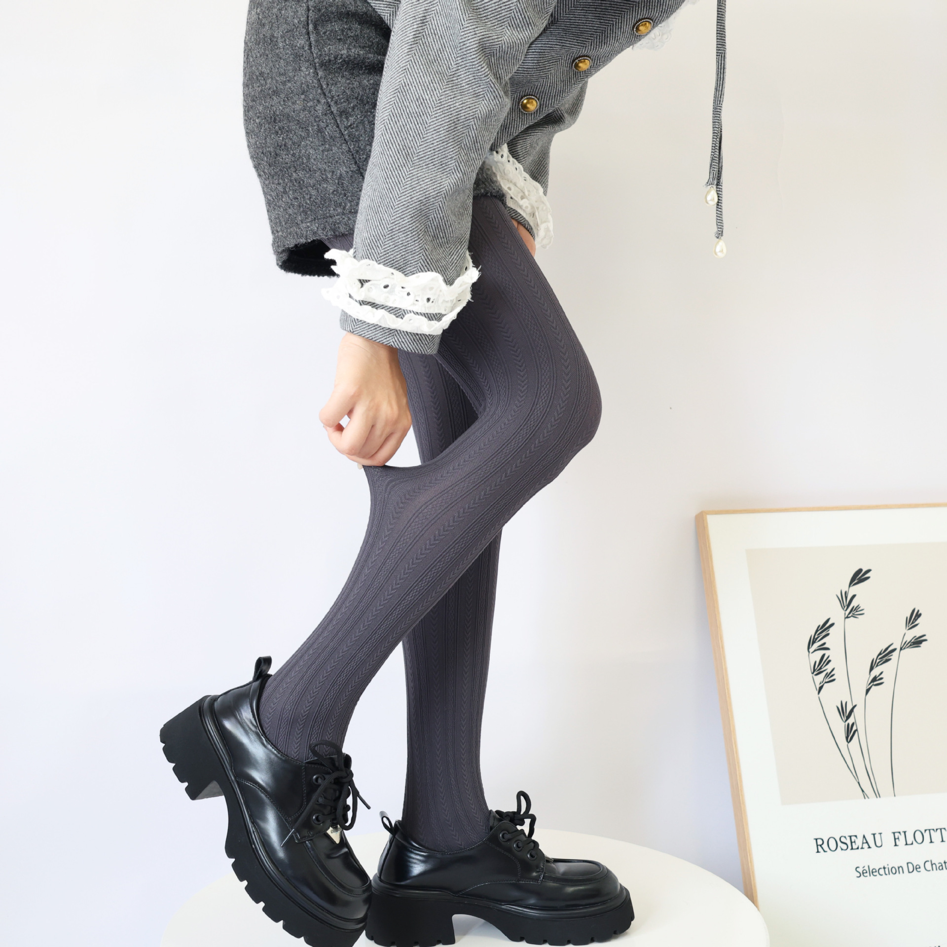가을과 겨울 새로운 수직 곡물 밀 자카드 양말 회색 슬림 올 매치 그레이 바닥 양말 빈티지 다리 양말스토어 가기
