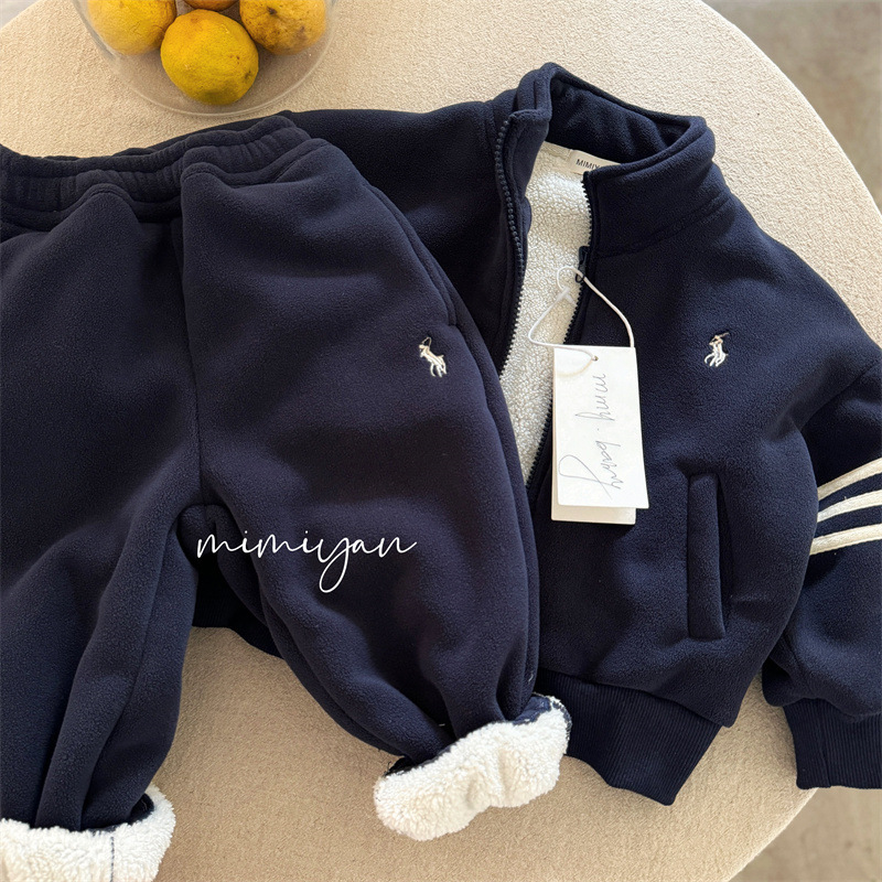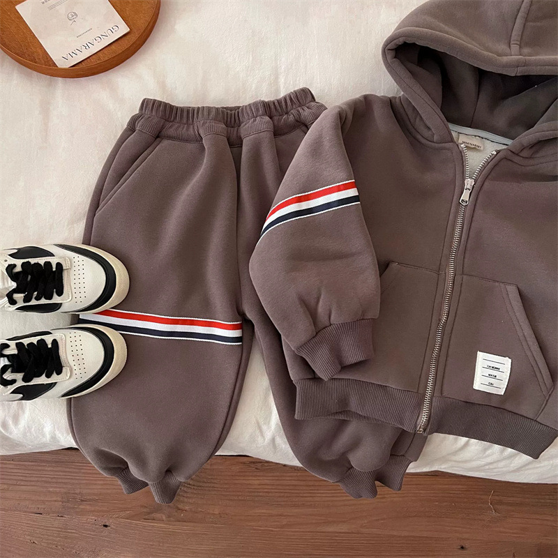 당일 출고 가능! 어린이 기모 의류 조수 브랜드 아동복 2024 겨울 기모 따뜻한 스포츠 세트 투피스 세트