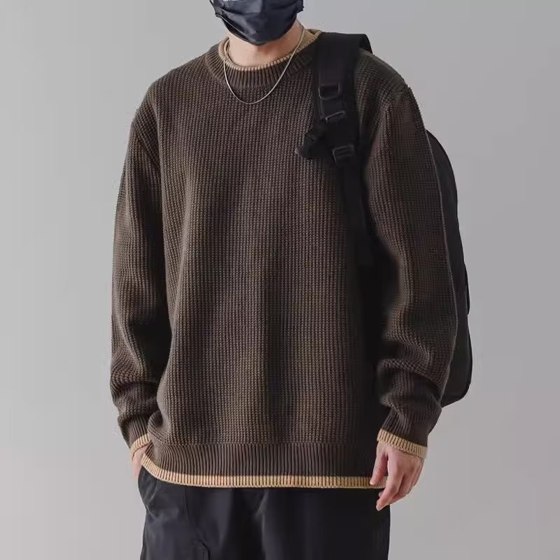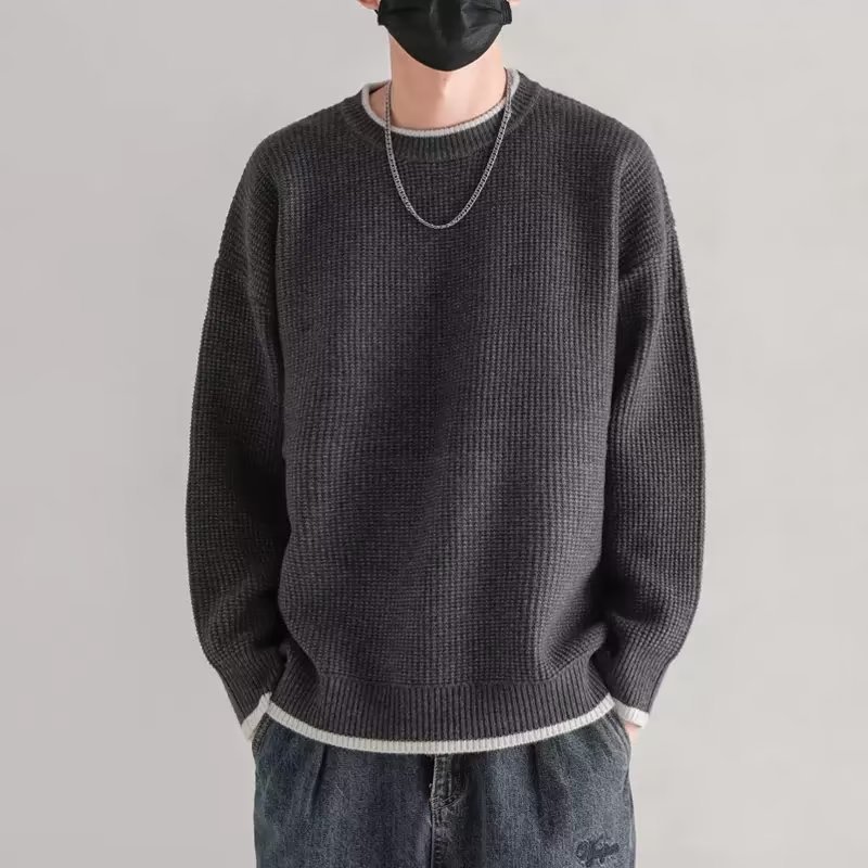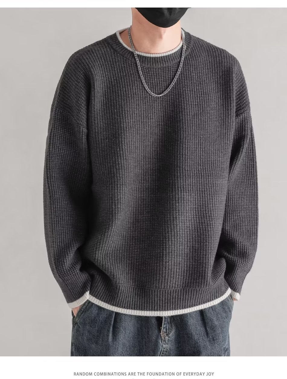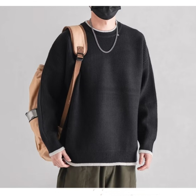 가을과 겨울 가짜 투피스 스웨터 남성용 두꺼운 트렌디 한 내부 울 니트웨어 루즈베이스 셔츠 커플 탑 옷 트렌디