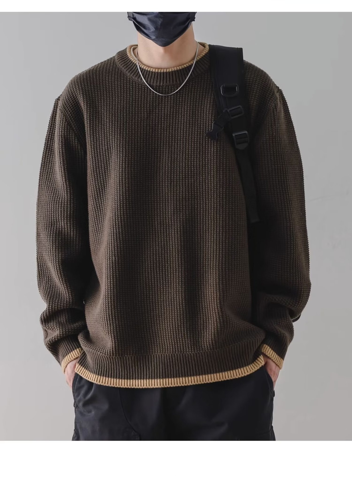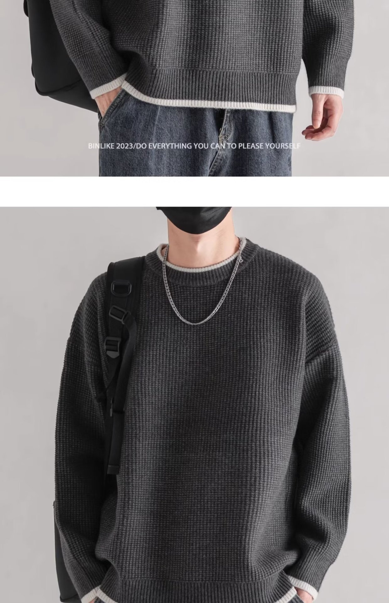 가을과 겨울 가짜 투피스 스웨터 남성용 두꺼운 트렌디 한 내부 울 니트웨어 루즈베이스 셔츠 커플 탑 옷 트렌디스토어 가기