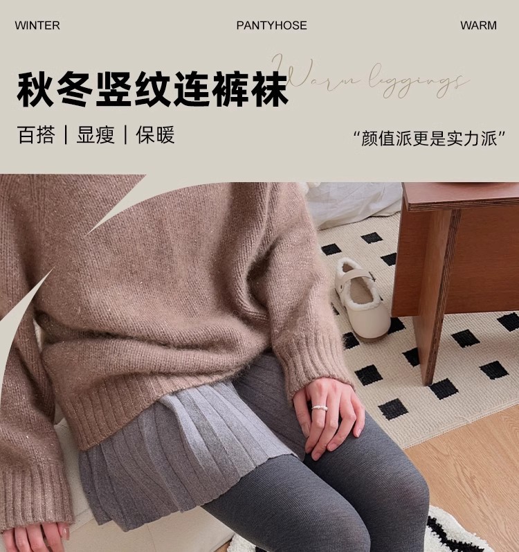 면 수직 스트립 스레드 레깅스 여성의 가을과 겨울 기모 두꺼운 높은 허리 따뜻한 슬리밍 발 외부 착용 팬티 스타킹