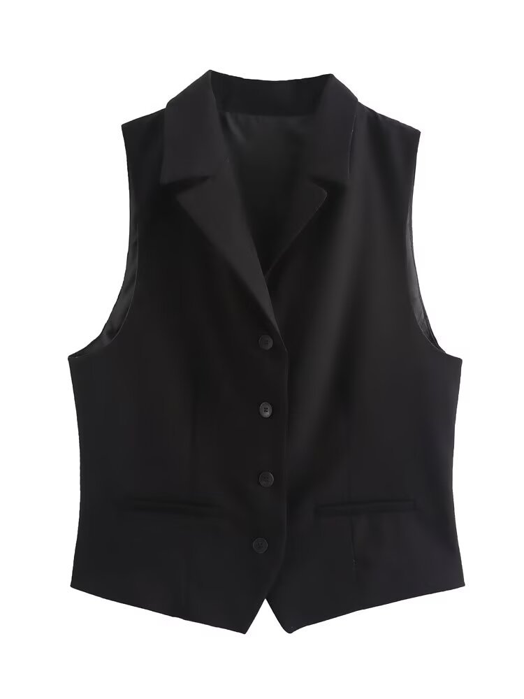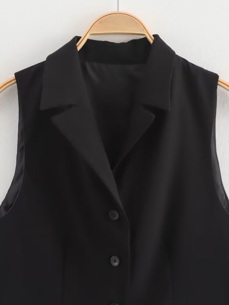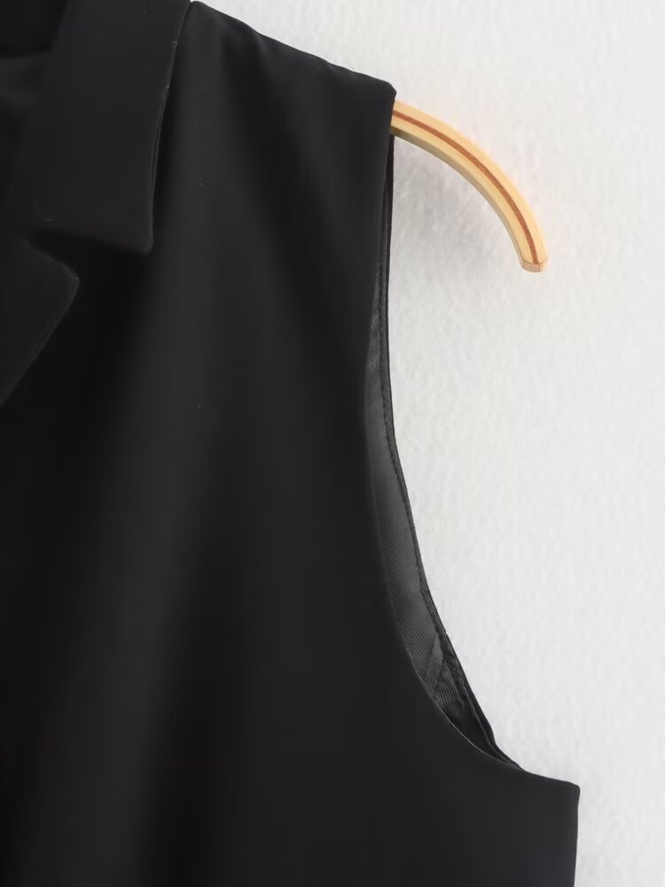 대외 무역 2024 유럽과 미국의 가을 새로운 기질 옷깃 민소매 싱글 브레스트 블랙 세트 조끼 여성 4749803