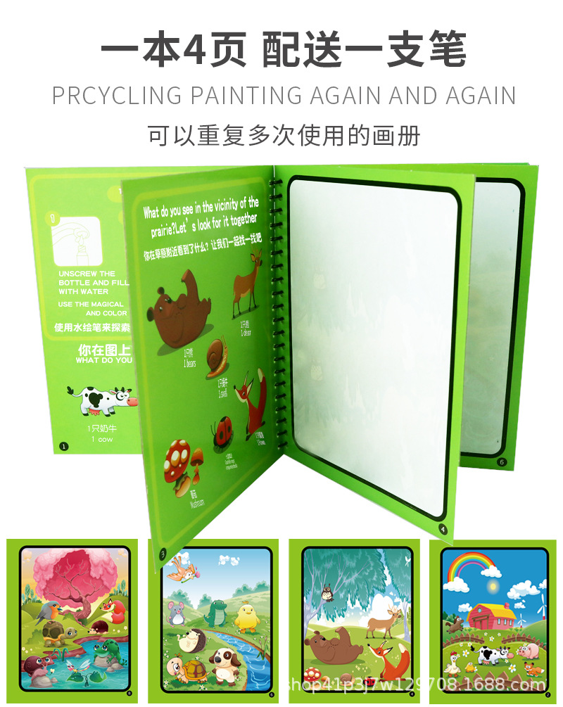 어린이 마법의 물 그림 책 낙서 그림 그림 그림 펜 터치 물 그림 유치원 소년 소녀 두꺼운 그림