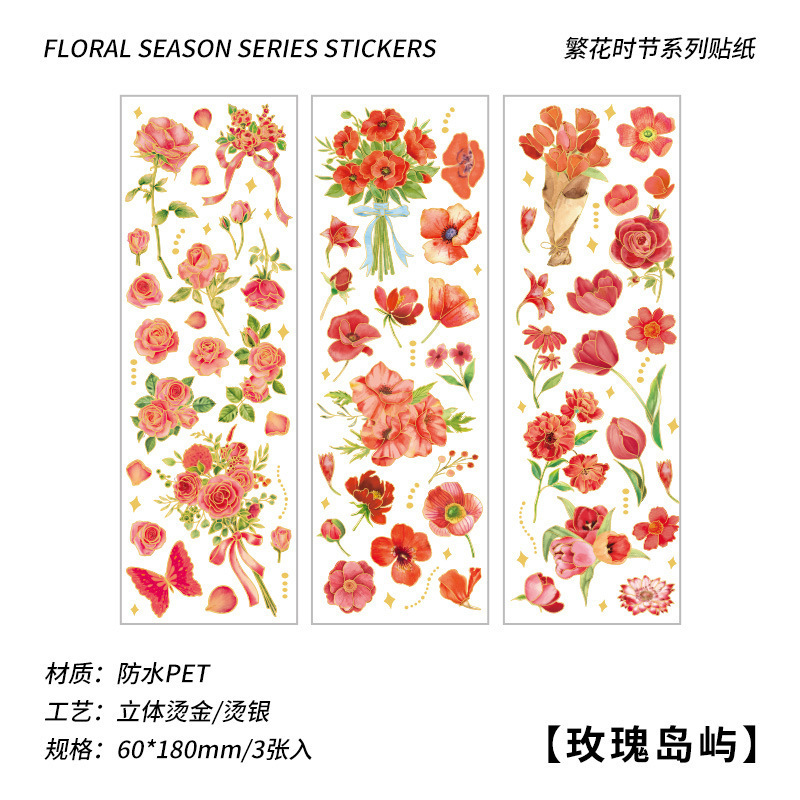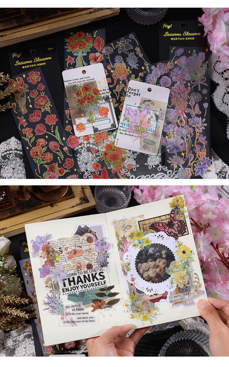 브론징 pvc 손 계정 스티커 가방 바쁜 시즌 스티커 방수 복고풍 식물 꽃 손 계정 소재 diy 스티커스토어 가기