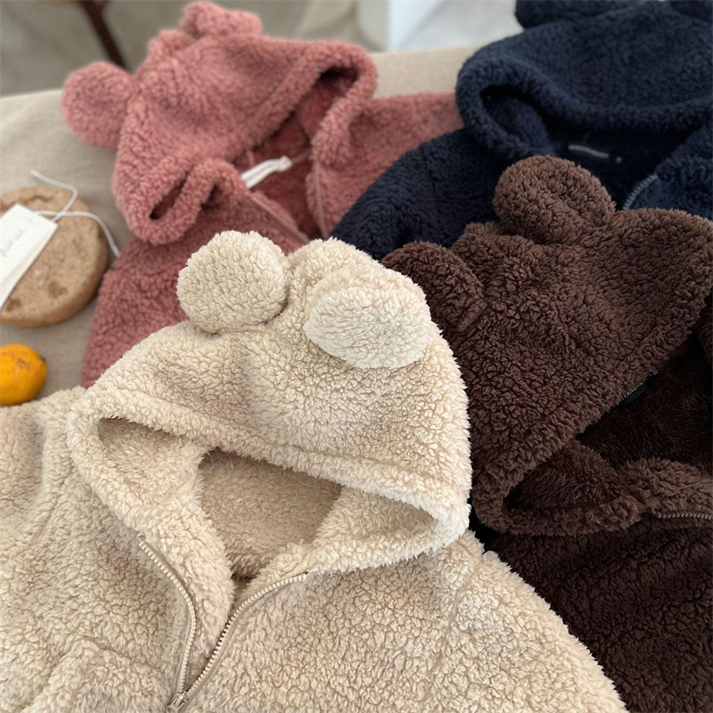 즉시 배송! 아동용 코트 2024 가을 겨울 신상 남녀 아동용 귀달린 털옷 유아용 트렌디 상의