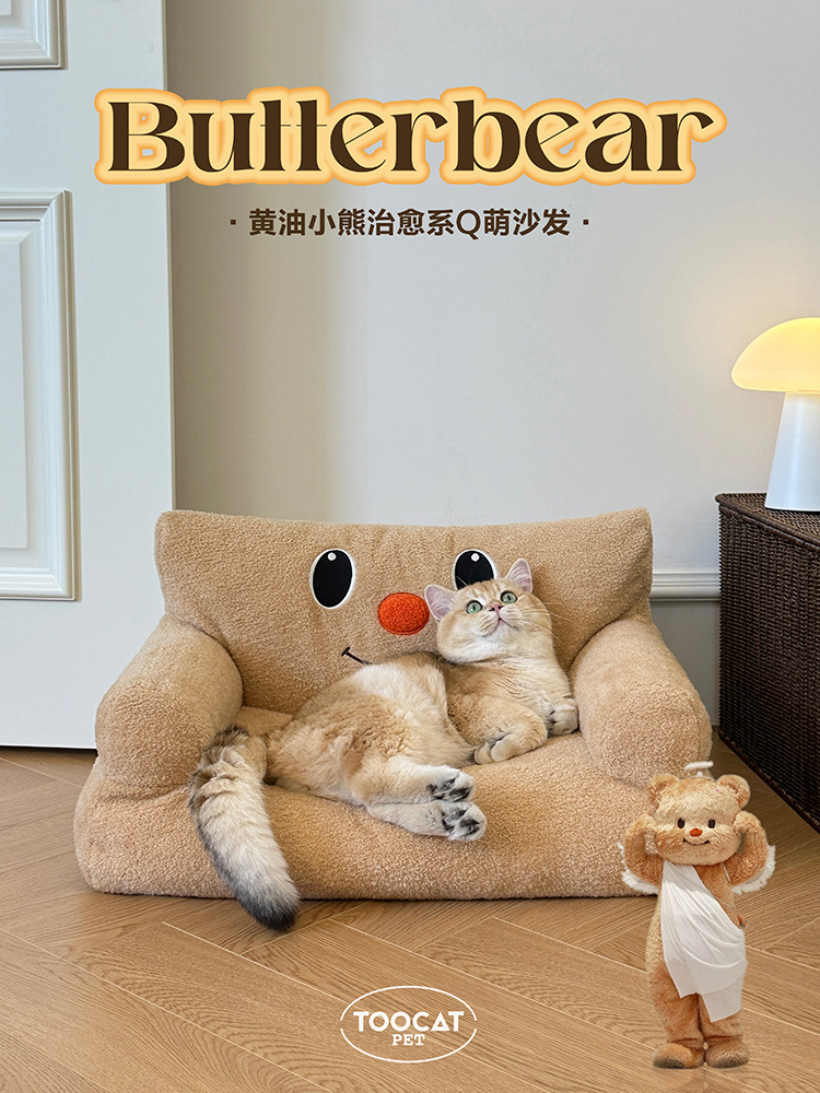 TOOCAT 버터 베어 애완 동물 둥지 소파 베드 사계절 유니버설 켄넬 고양이 둥지 고양이 침대 풀 세트 이동식 및 세척 가능한 봉제스토어 가기