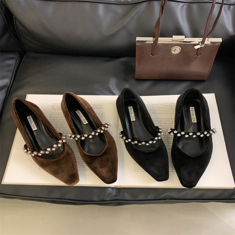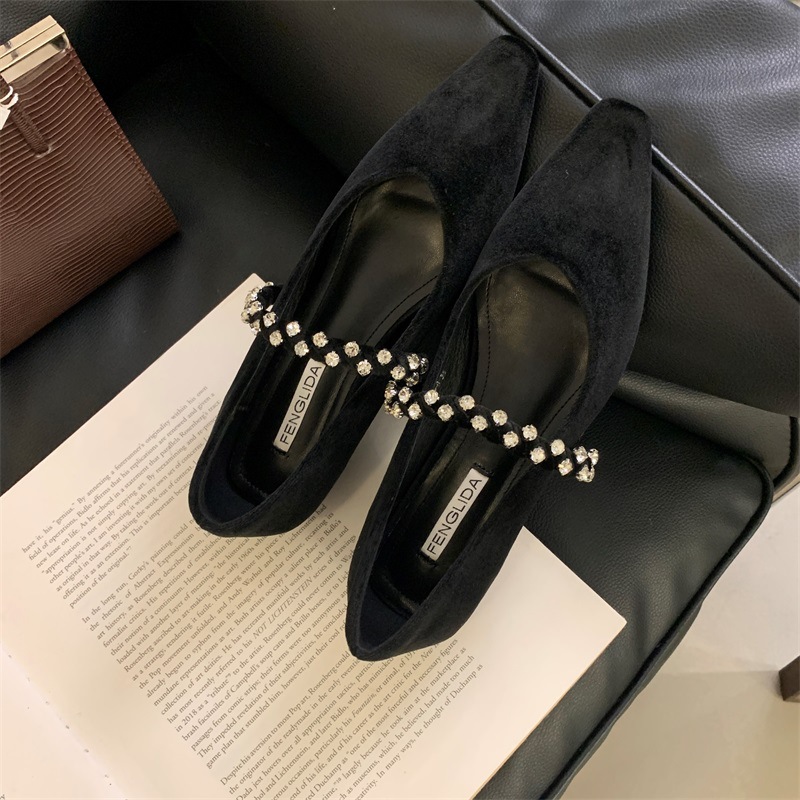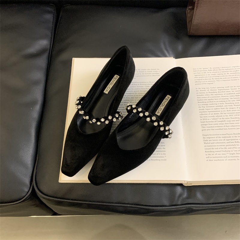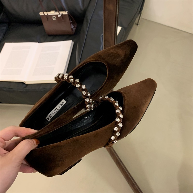 프랑스 스타일의 두꺼운 힐 신발 스웨이드 메리 제인 여성 신발 2024 가을과 겨울 새로운 스타일 우아한 낮은 발 뒤꿈치 작업 신발스토어 가기