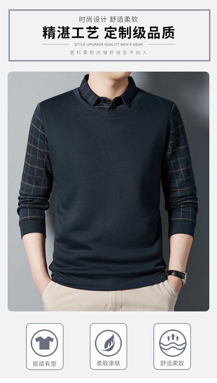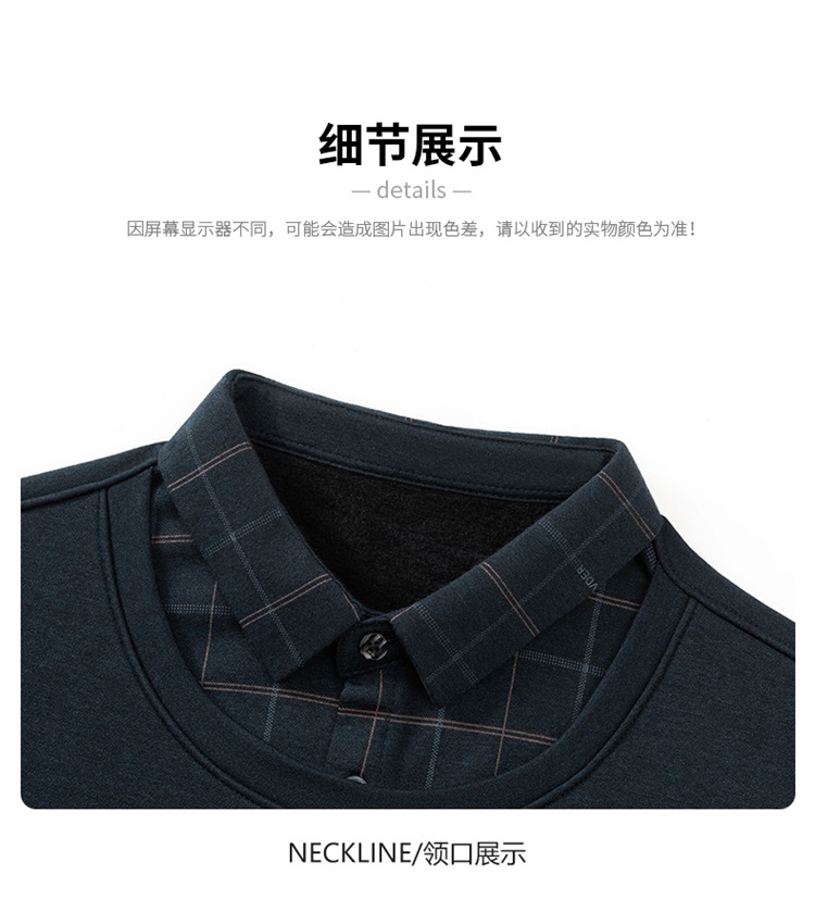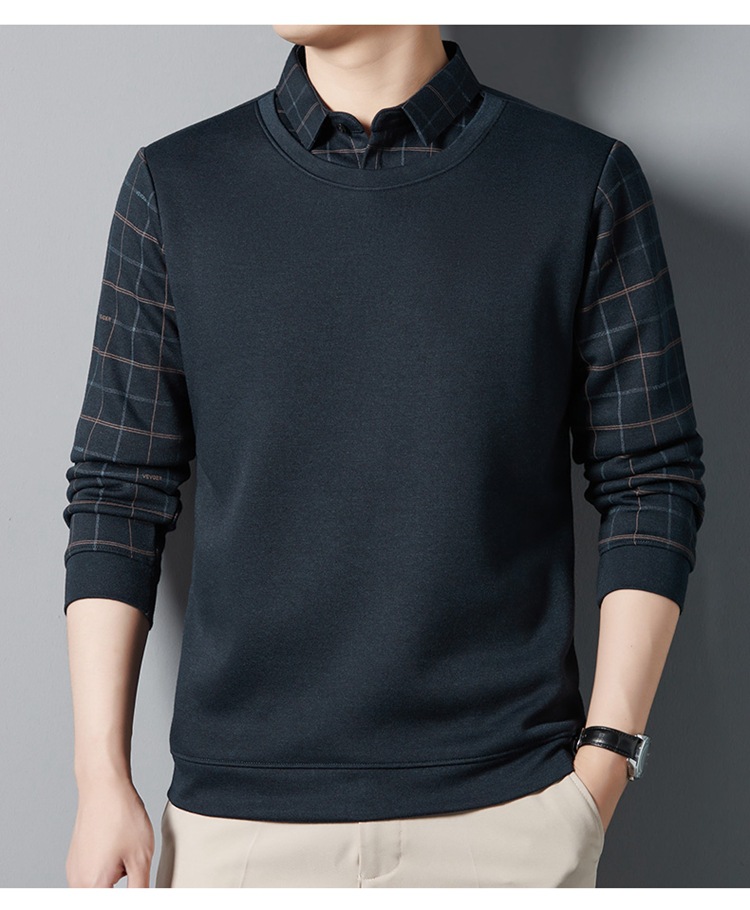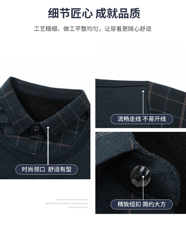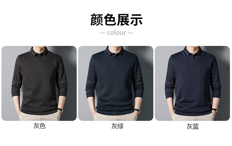 가을과 겨울 기모 두꺼운 가짜 투피스 스웨터 패션 셔츠 칼라 따뜻한 남성베이스 셔츠 체크 무늬 스티칭 폴로 셔츠