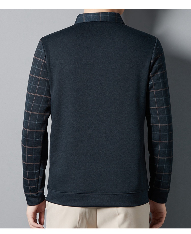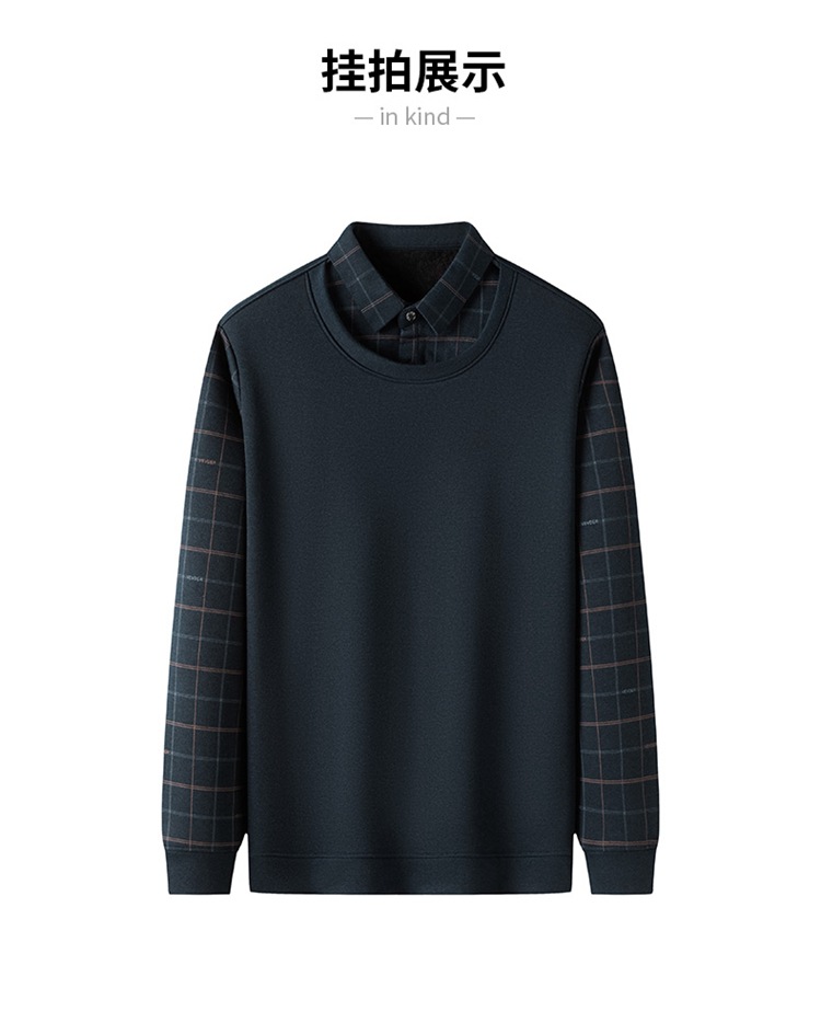 가을과 겨울 기모 두꺼운 가짜 투피스 스웨터 패션 셔츠 칼라 따뜻한 남성베이스 셔츠 체크 무늬 스티칭 폴로 셔츠스토어 가기