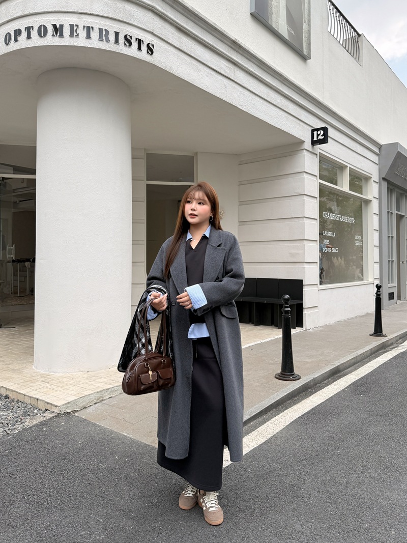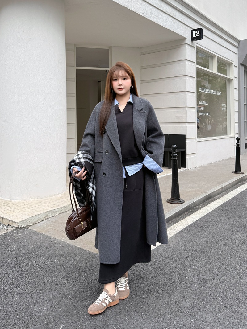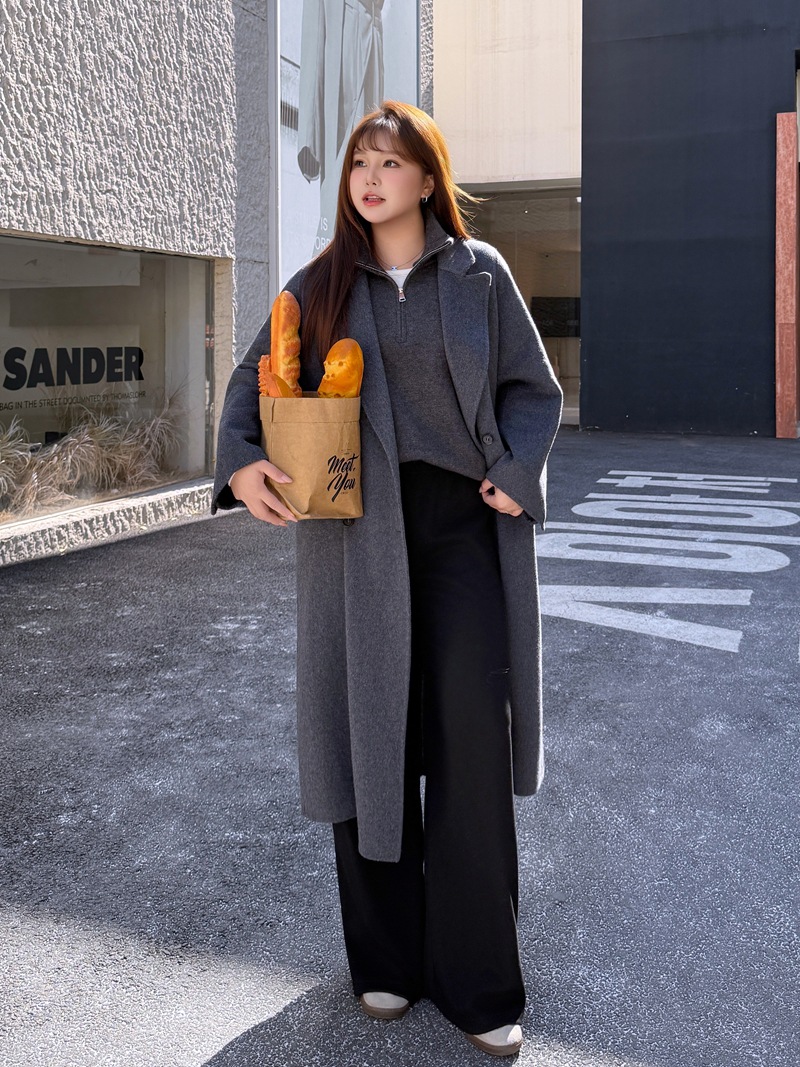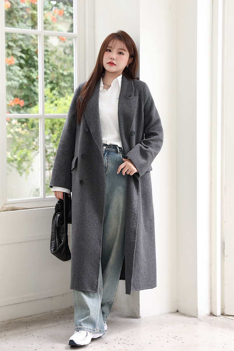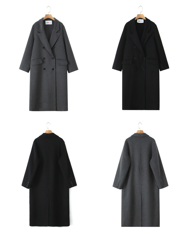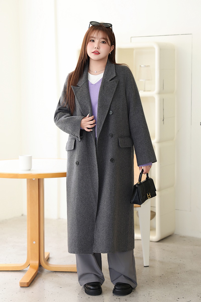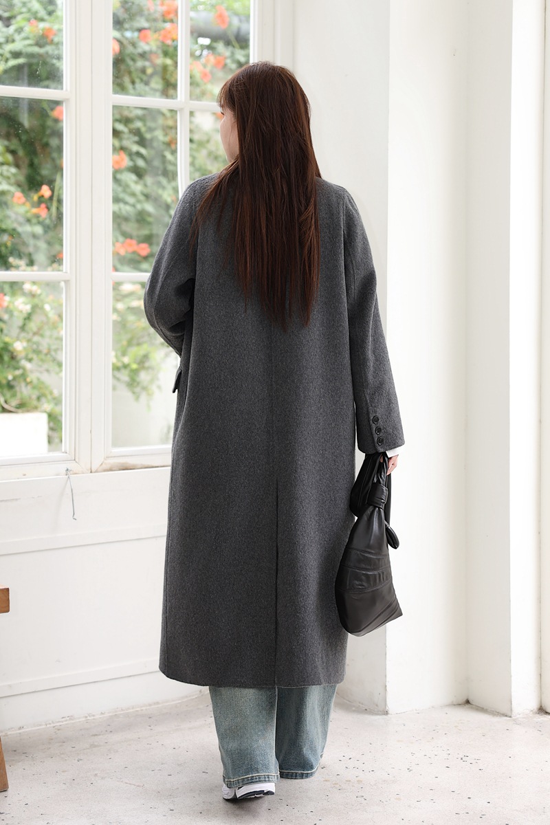 통근용 양면 울 코트 중간 길이 룬치 9084 대형 통근용 양모 롱 코트