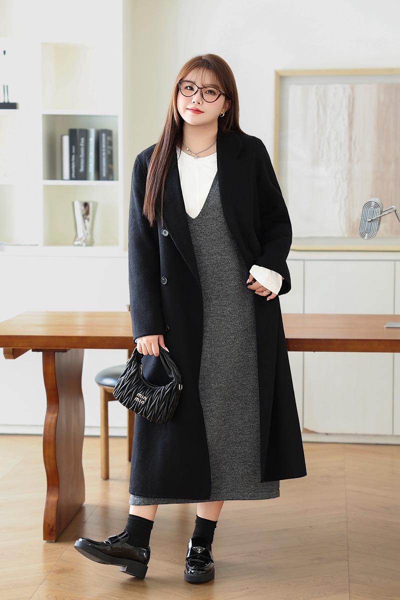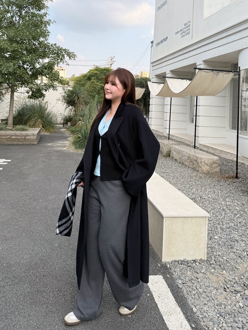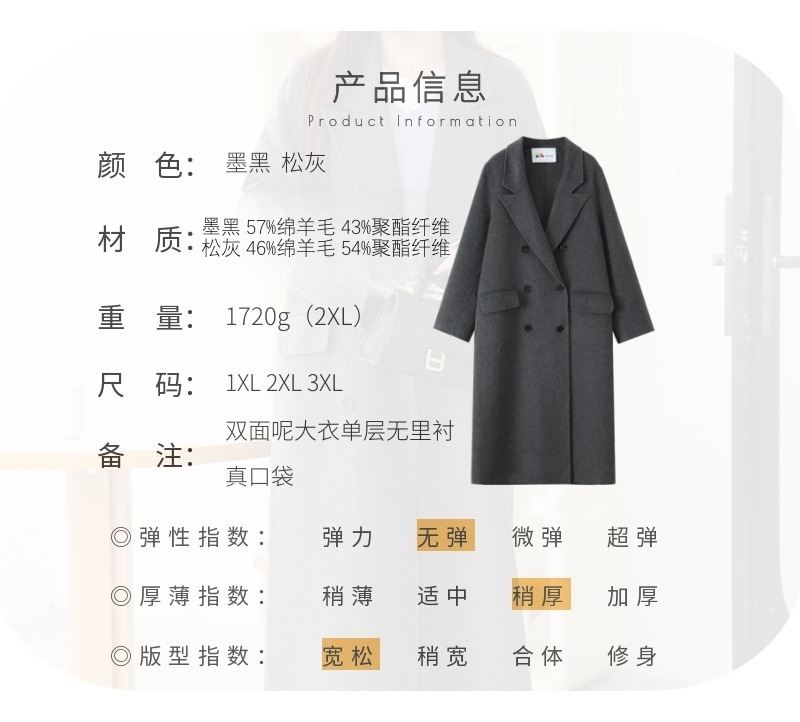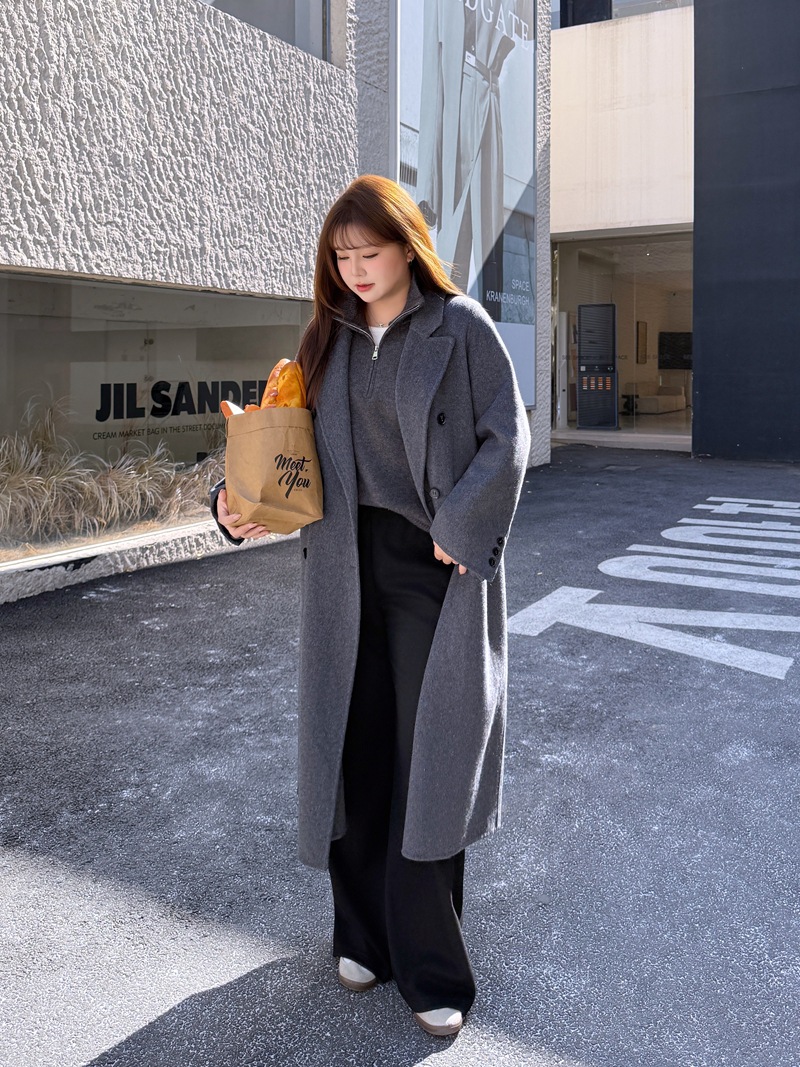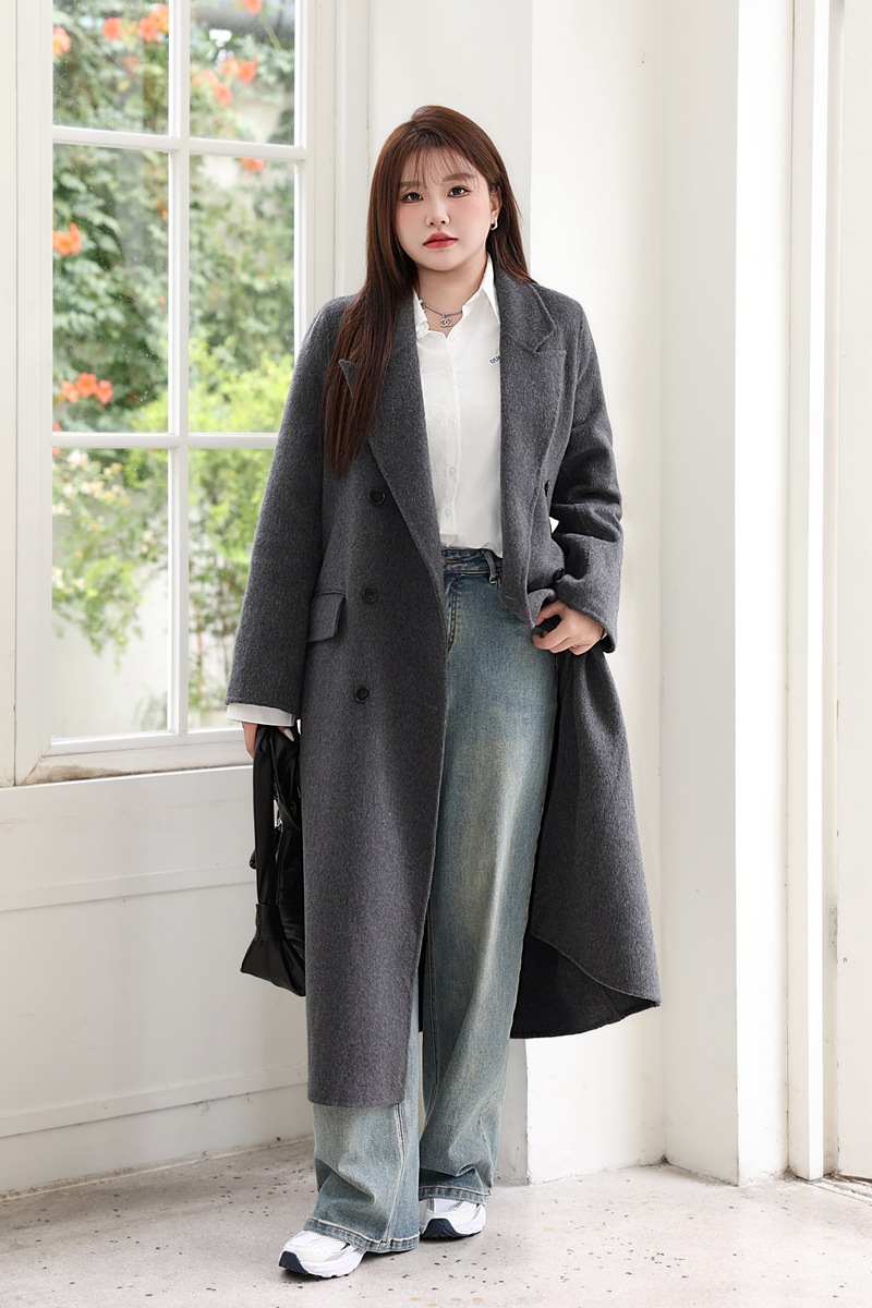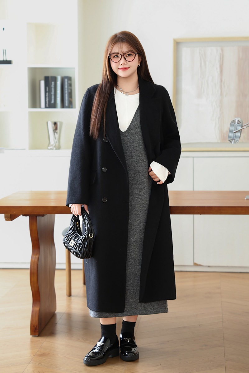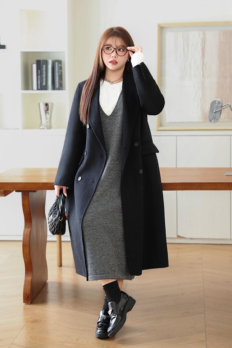 통근용 양면 울 코트 중간 길이 룬치 9084 대형 통근용 양모 롱 코트