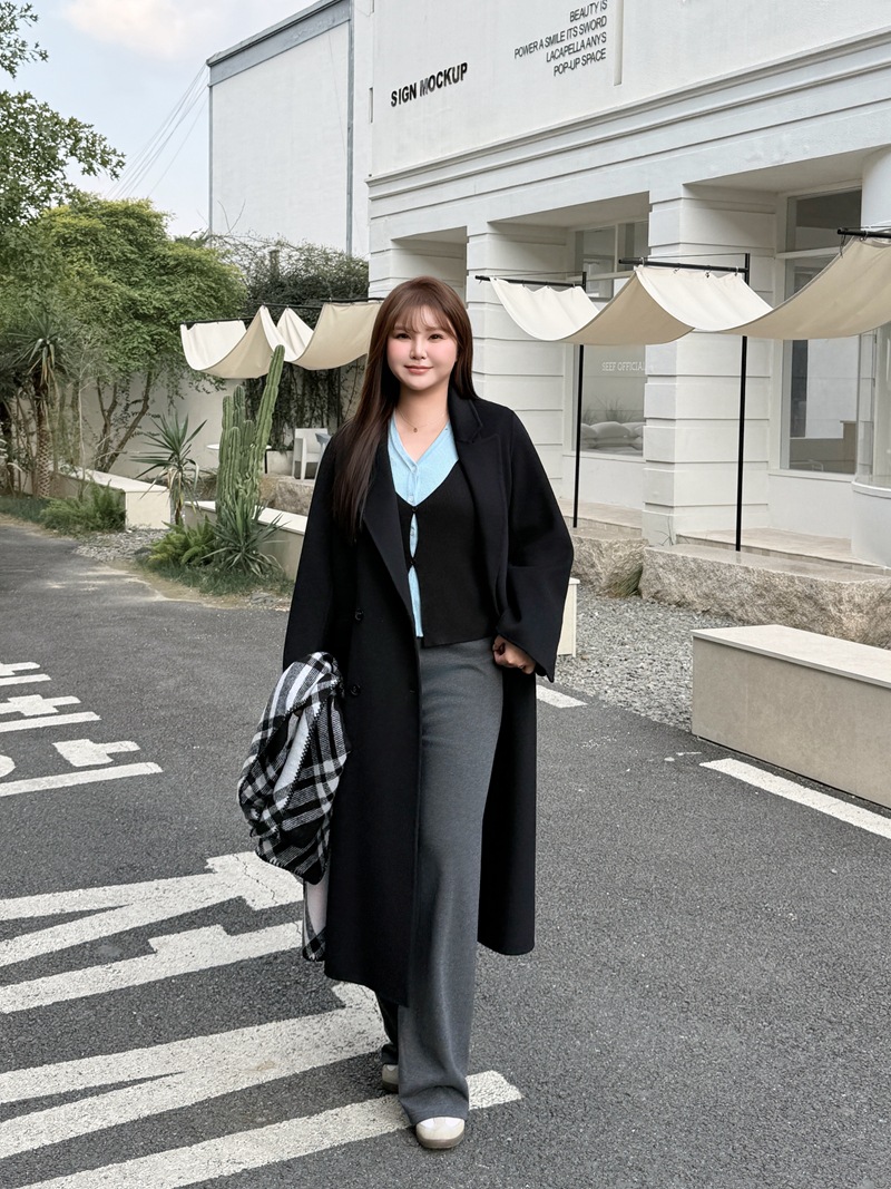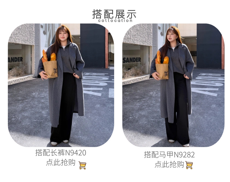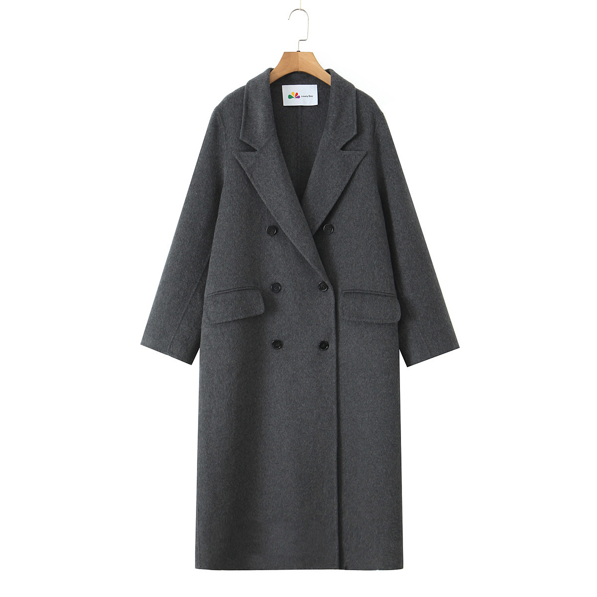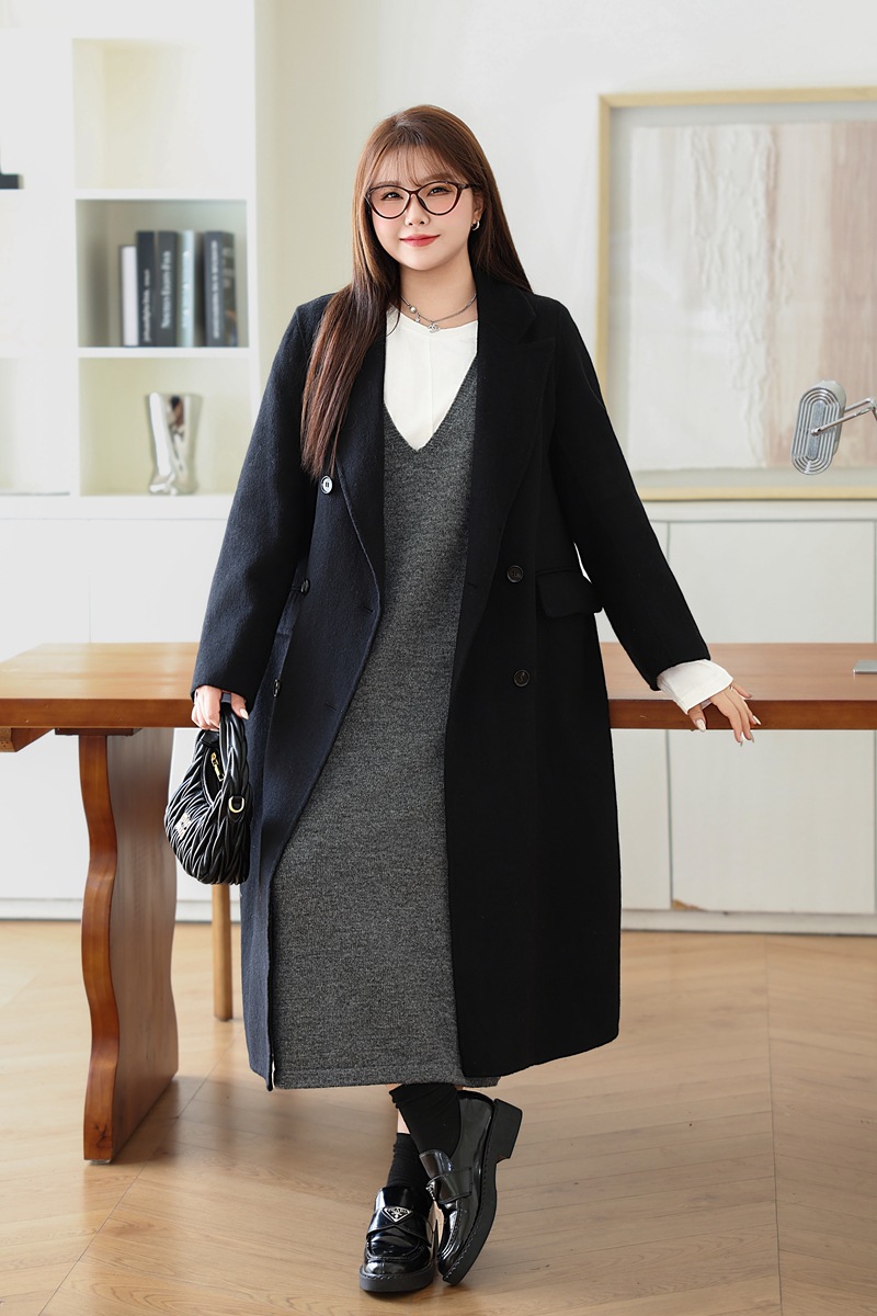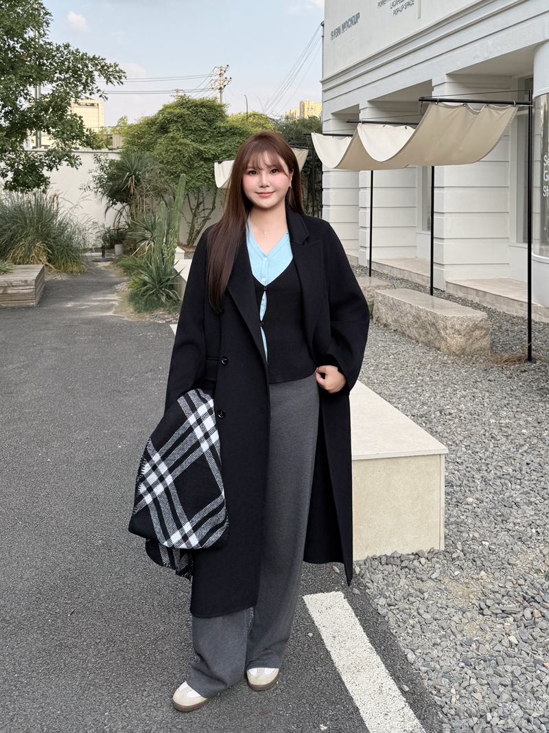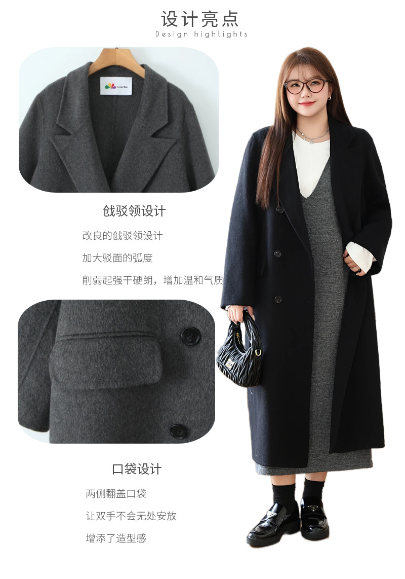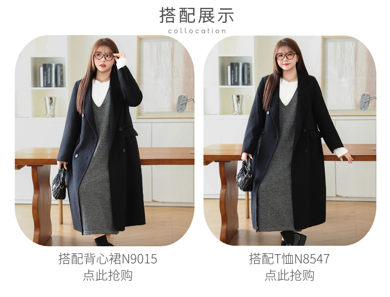 통근용 양면 울 코트 중간 길이 룬치 9084 대형 통근용 양모 롱 코트