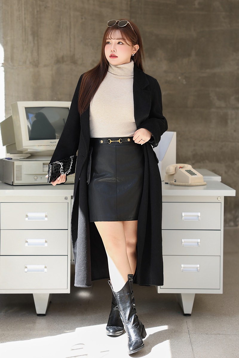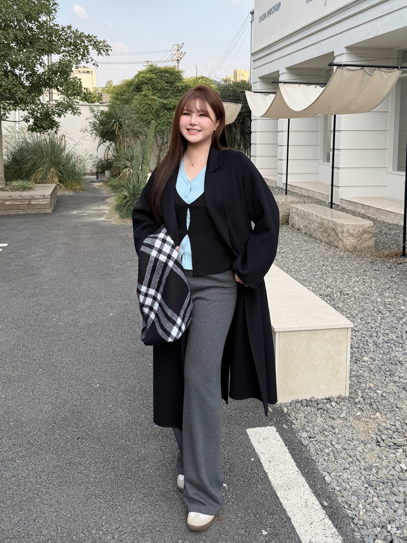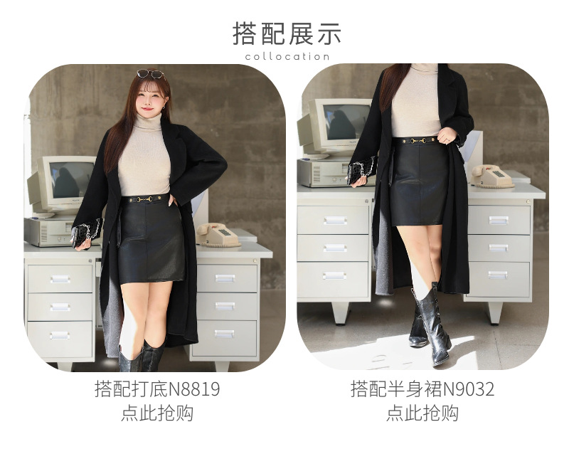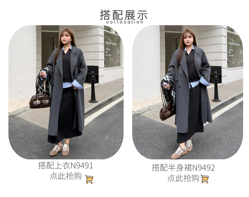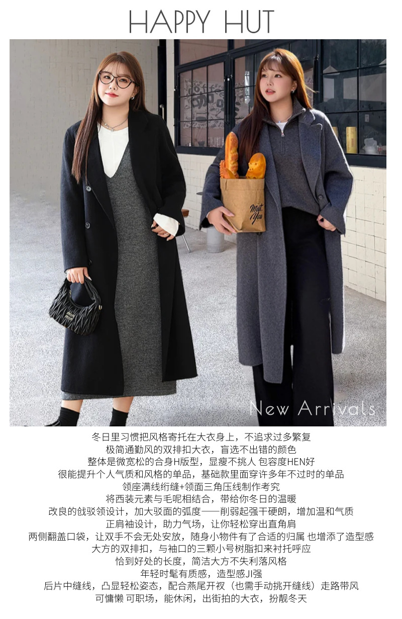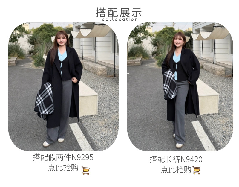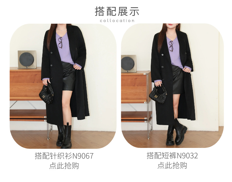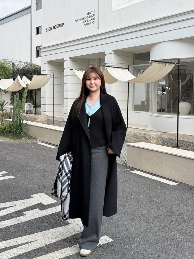 통근용 양면 울 코트 중간 길이 룬치 9084 대형 통근용 양모 롱 코트