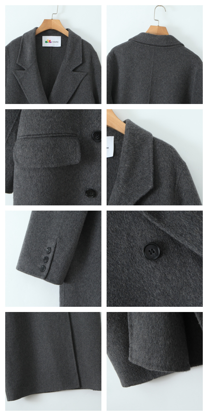 통근용 양면 울 코트 중간 길이 룬치 9084 대형 통근용 양모 롱 코트스토어 가기