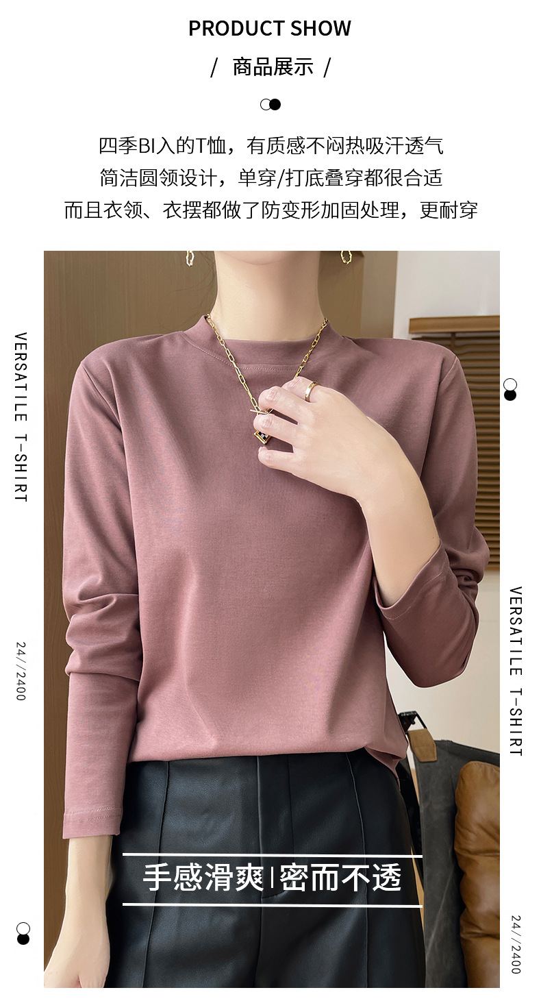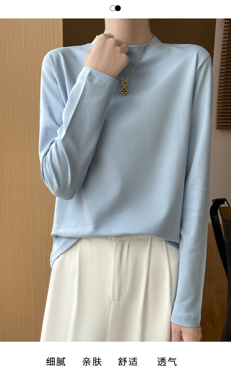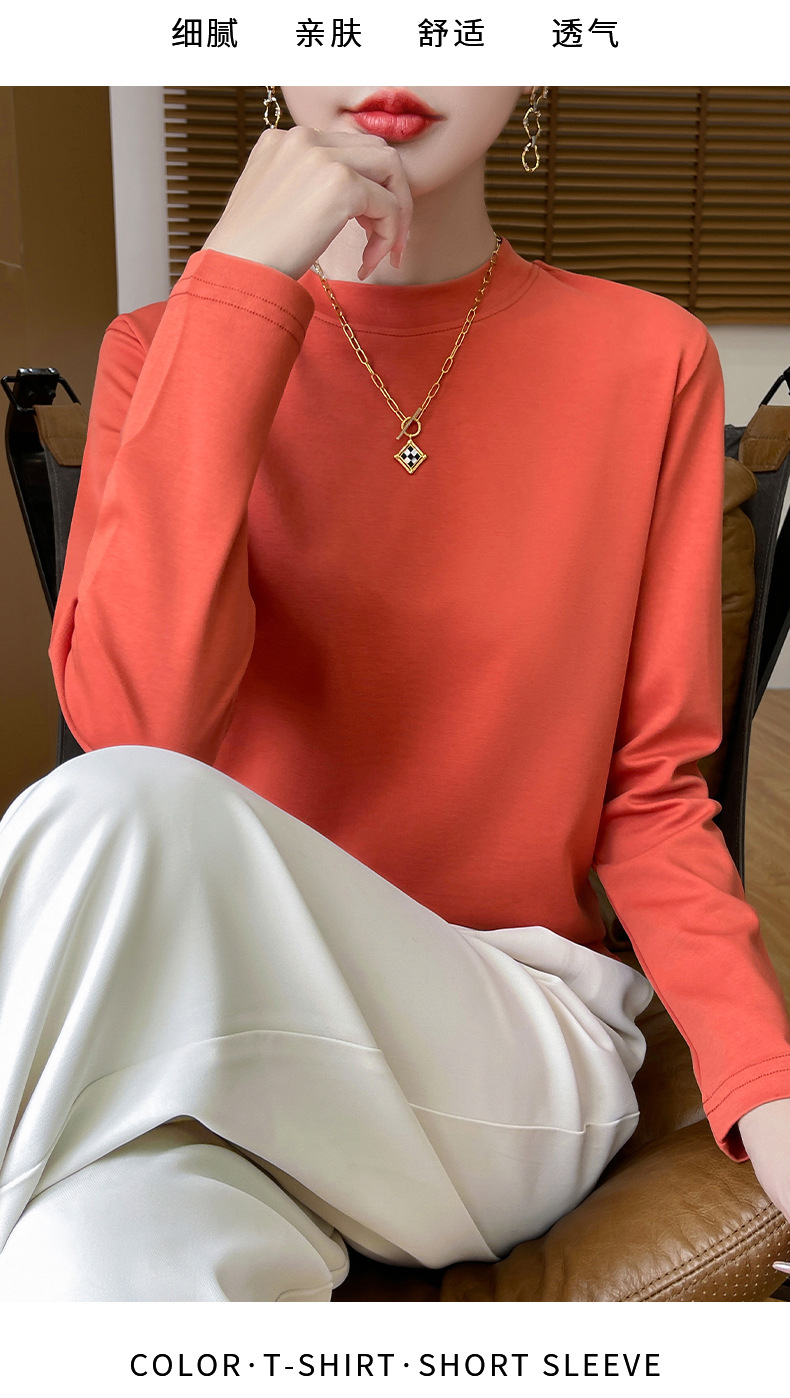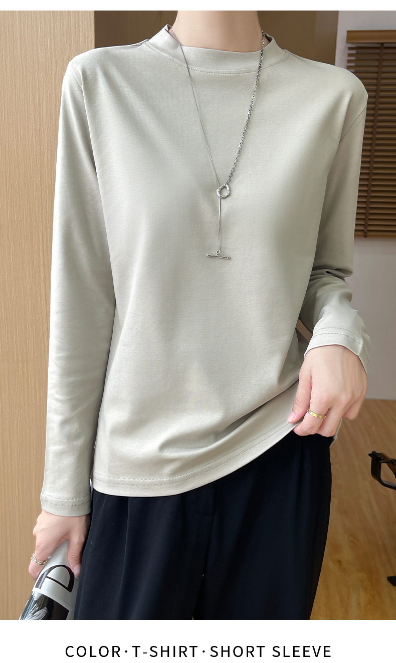 쇼핑몰 같은 스타일 봄과 가을 코튼 긴팔 티셔츠 여성용 반쪽 터틀넥 빗 코튼 탑 루즈 쇼트베이스 셔츠스토어 가기