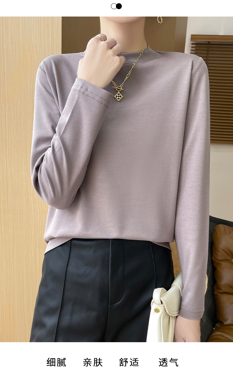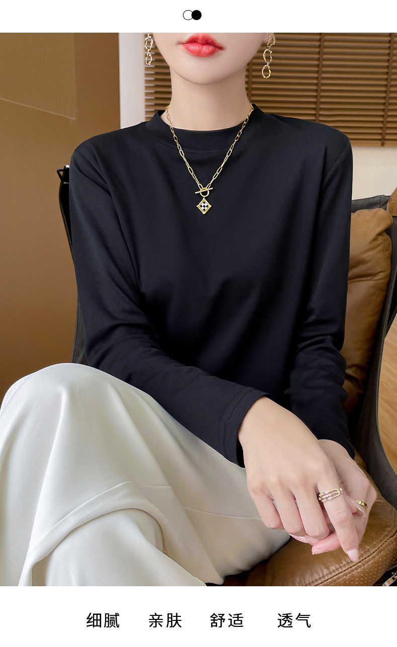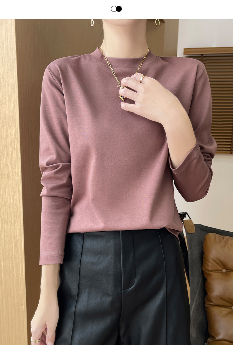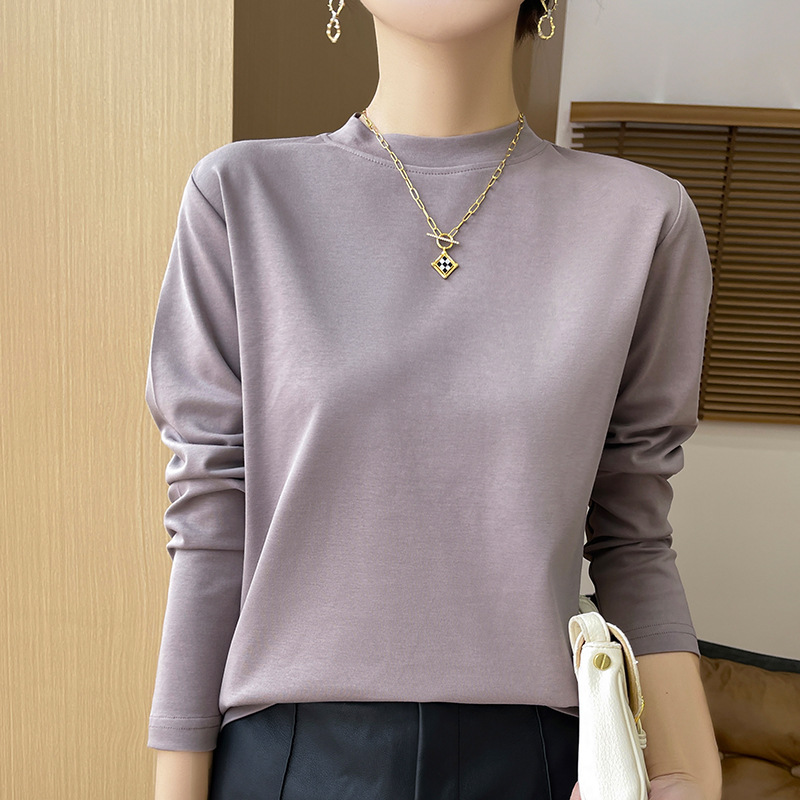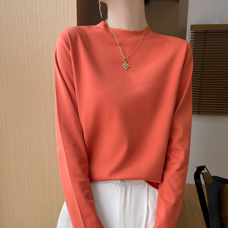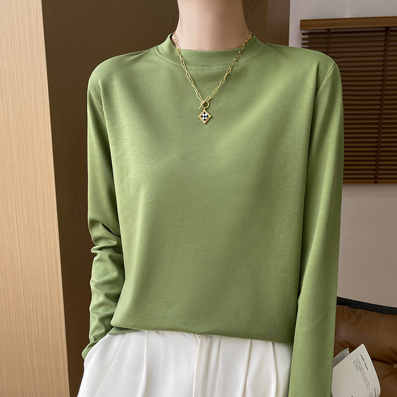 쇼핑몰 같은 스타일 봄과 가을 코튼 긴팔 티셔츠 여성용 반쪽 터틀넥 빗 코튼 탑 루즈 쇼트베이스 셔츠