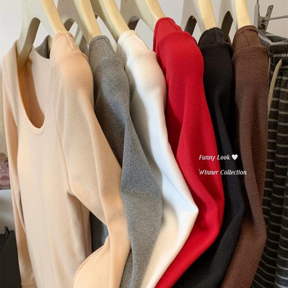 도파민 샌딩 따뜻한 가슴 패드베이스 탑 여성의 가을 새로운 순수한 욕망 스타일 슬림핏 스퀘어 칼라 긴팔 티셔츠