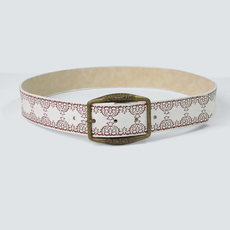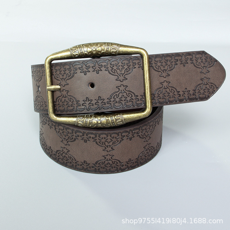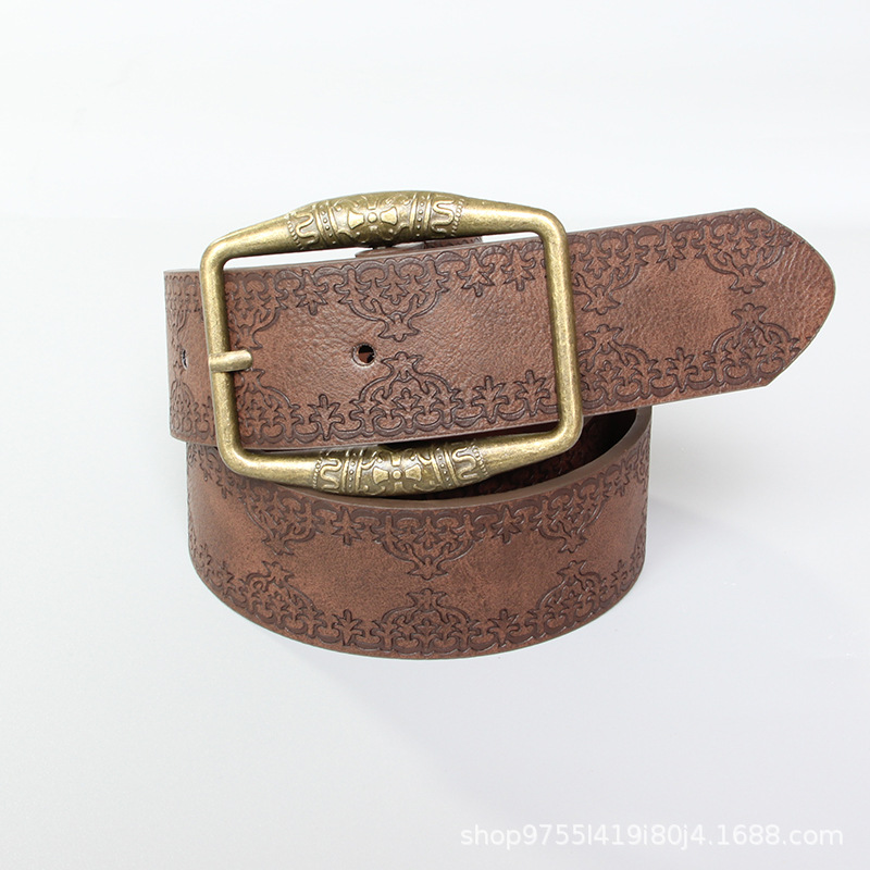 2023 대외 무역 새로운 복고풍 문학 스타일 여성 벨트 부티크 청동 버클 맞춤형 엠보싱 PU 벨트 도매