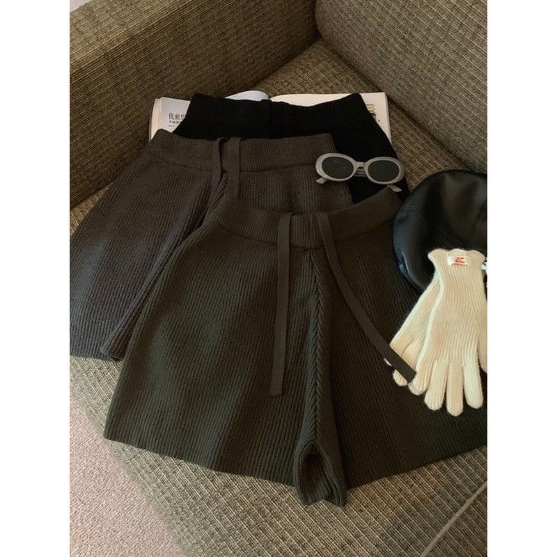 가을과 겨울 스트랩 느슨한 스트레이트 니트 울 반바지 여성용 하이 퀄리티 착용 바지스토어 가기