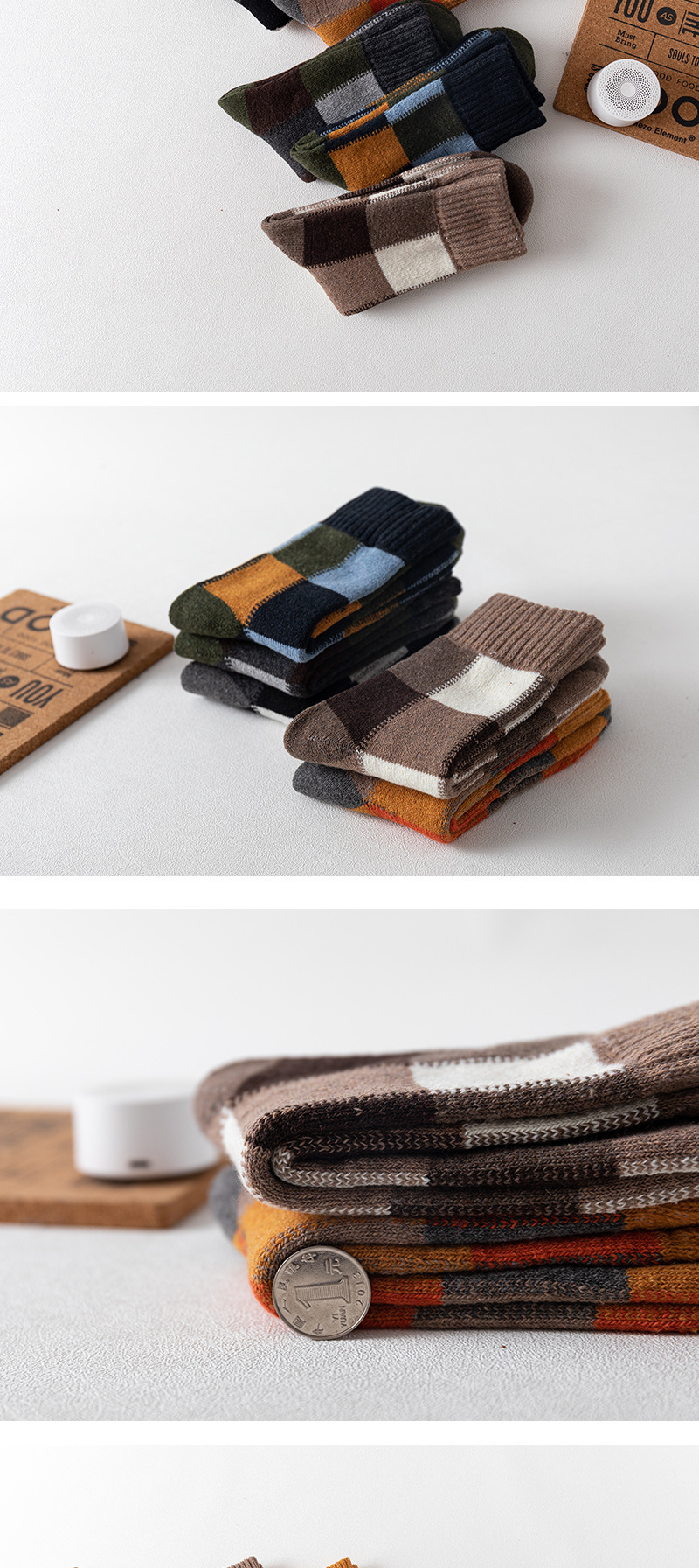 24 가을과 겨울 새로운 양말 남성 양말 격자 무늬 테리 두꺼운 따뜻한 토끼 양모 양말 국경 간 대외 무역
