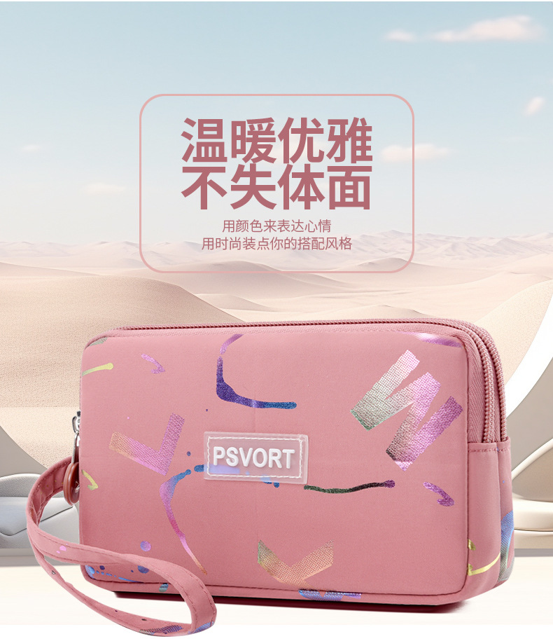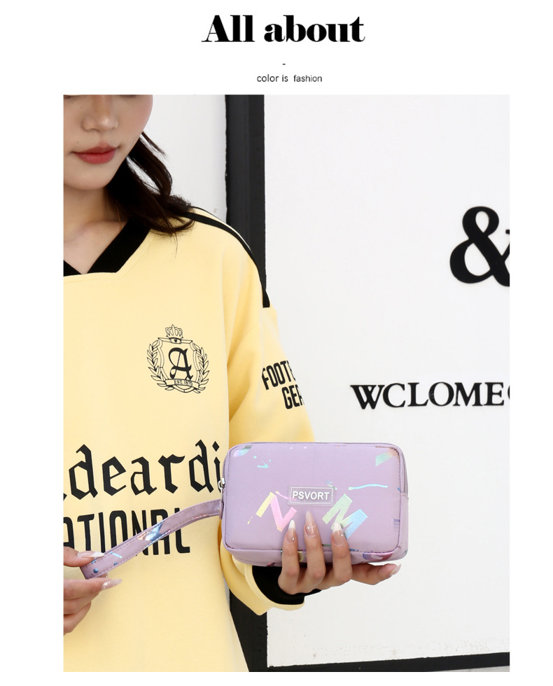 한국 스타일 패브릭 핸드 헬드 코인 지갑 여성의 긴 유행 다층 지퍼 대용량 대형 스크린 휴대 전화 키 백