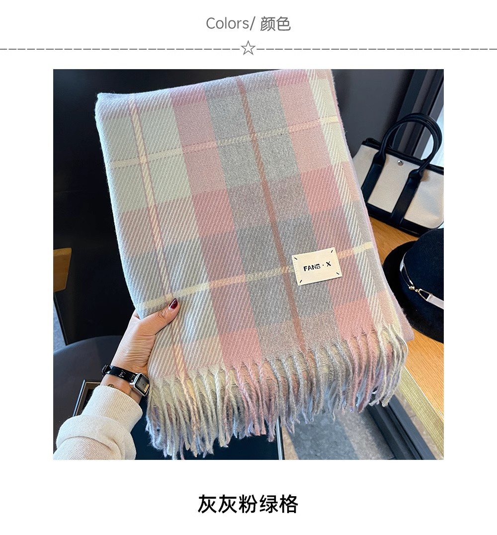 도매 왁스 같은 부드러운 회색 분말 격자 무늬 스카프 여성의 가을과 겨울 따뜻한 모조 캐시미어 학생 스카프 양용입니다.스토어 가기