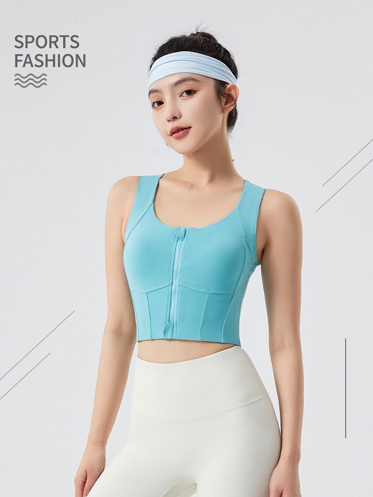 인간 낚시 라인 복부 스포츠 조끼는 유방 매트 요가 의류 액세서리 가슴 앞 지퍼 피트니스 브라와 함께 오래 착용 할 수 있습니다.