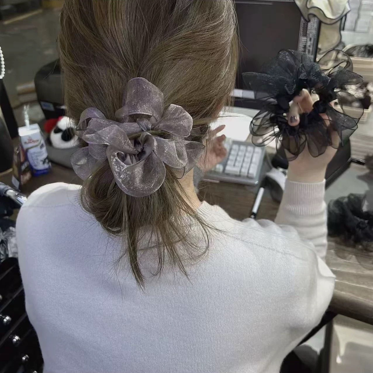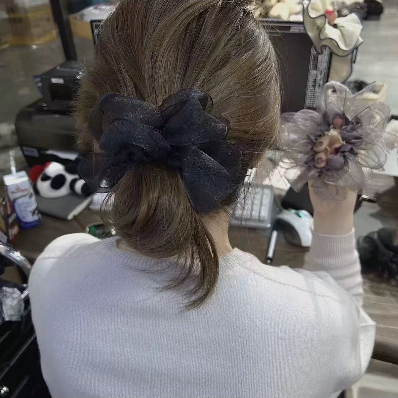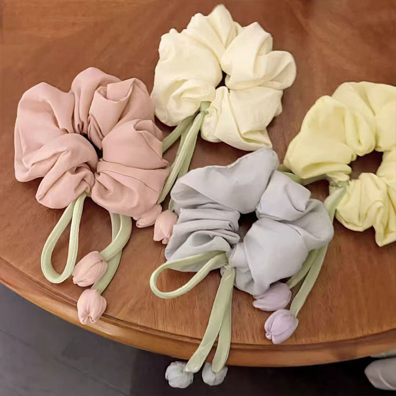 프랑스 레트로 고급 센스 대형 직분 헤어 링 대형 목재 프린지 꽃 버드 새틴 콜론 우아한 헤어 로프 헤어 액세서리