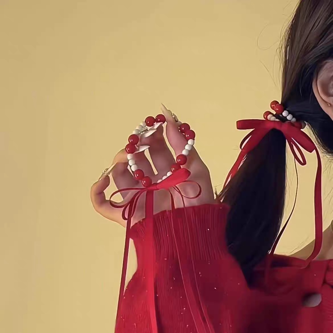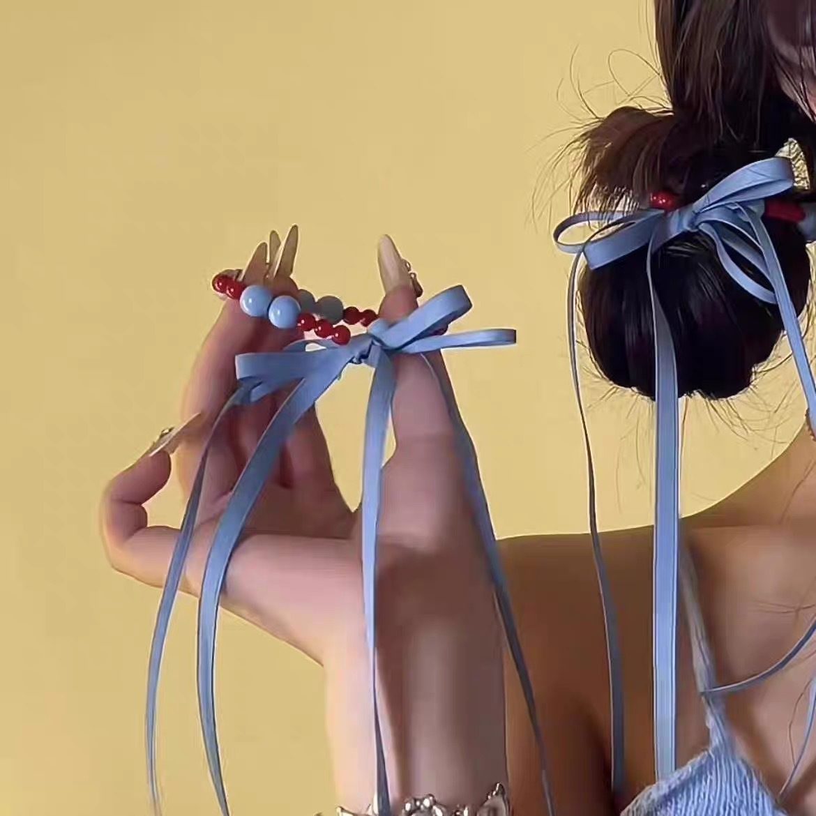 프랑스 레트로 고급 센스 대형 직분 헤어 링 대형 목재 프린지 꽃 버드 새틴 콜론 우아한 헤어 로프 헤어 액세서리스토어 가기