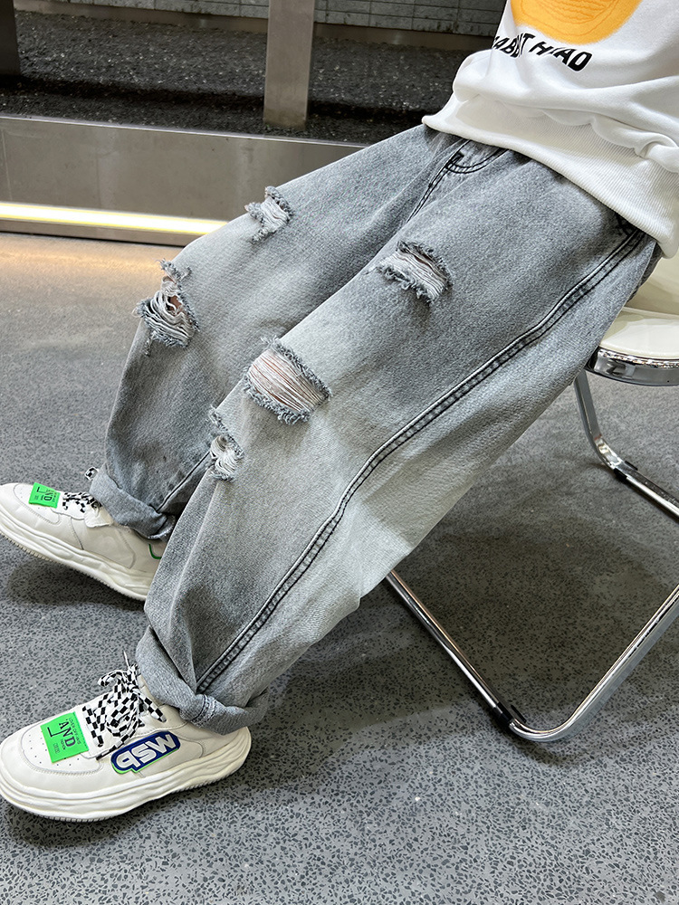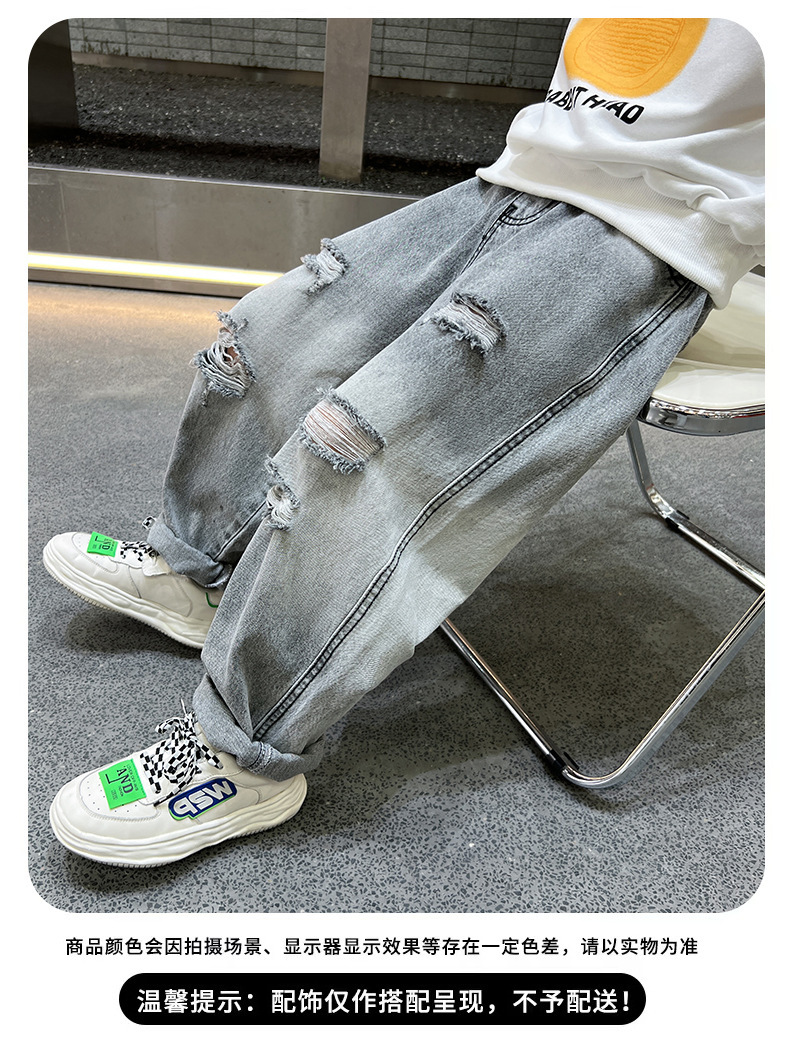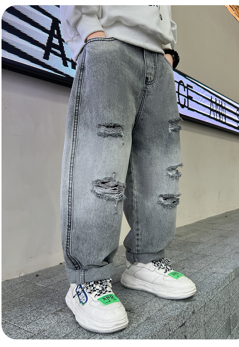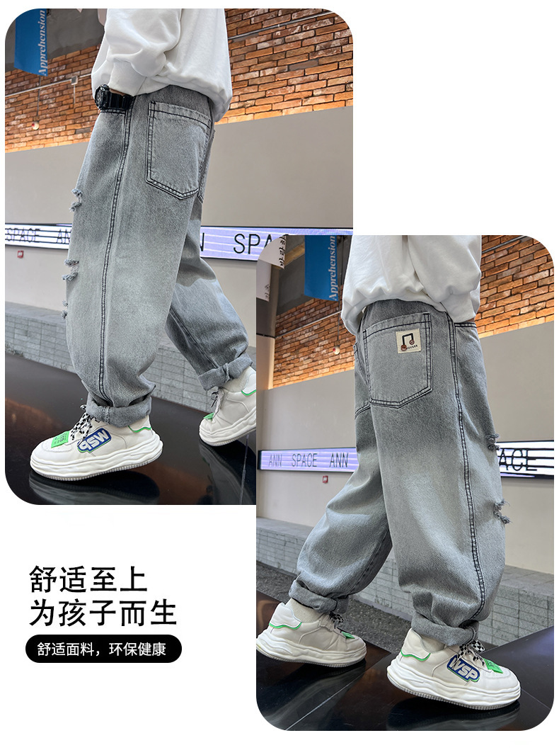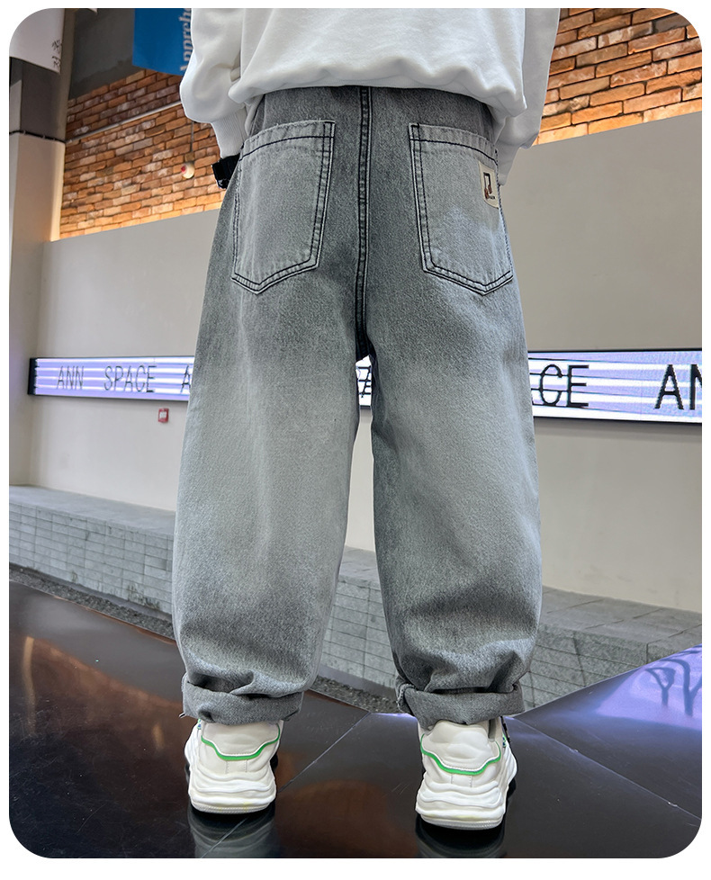 어린이 봄 바지 소년 청바지 봄과 가을 바지 가을 2024 새로운 스타일의 외국식 거리 부는 조수스토어 가기