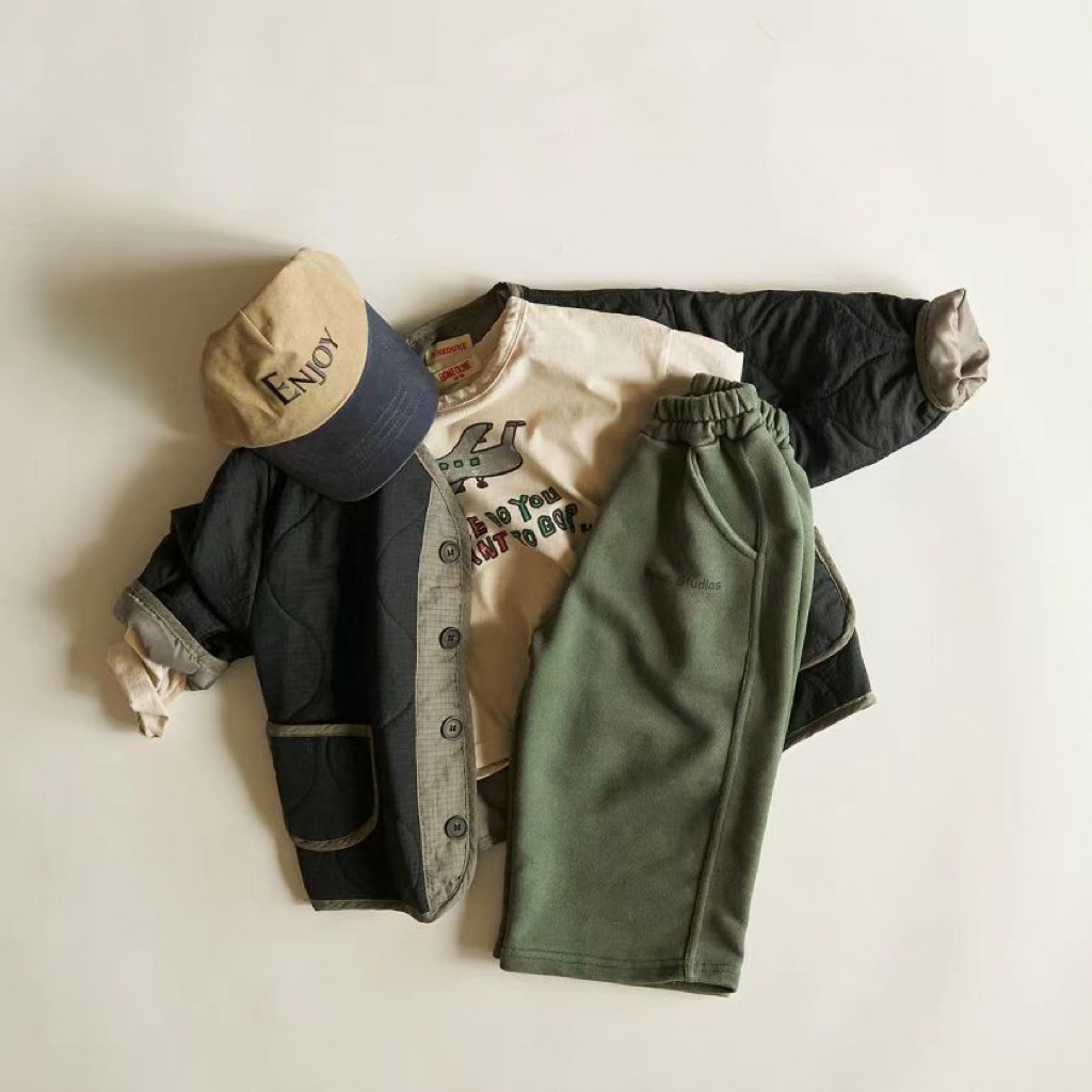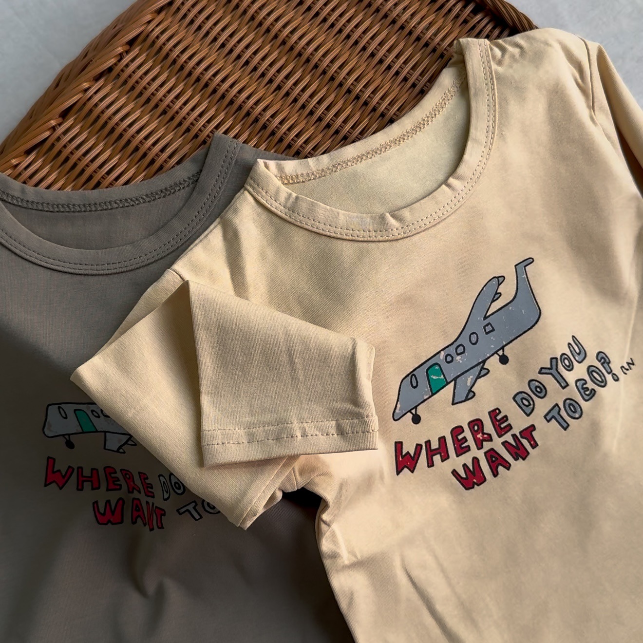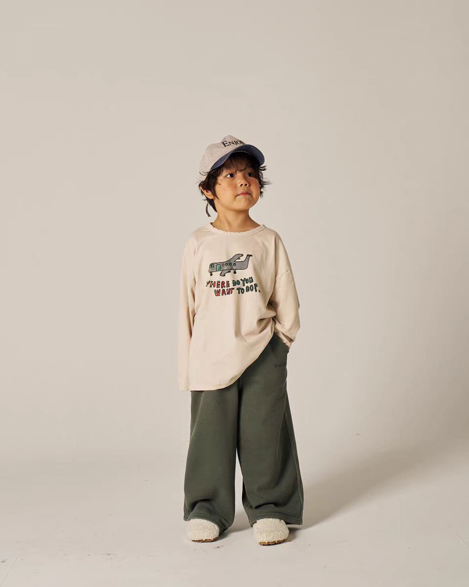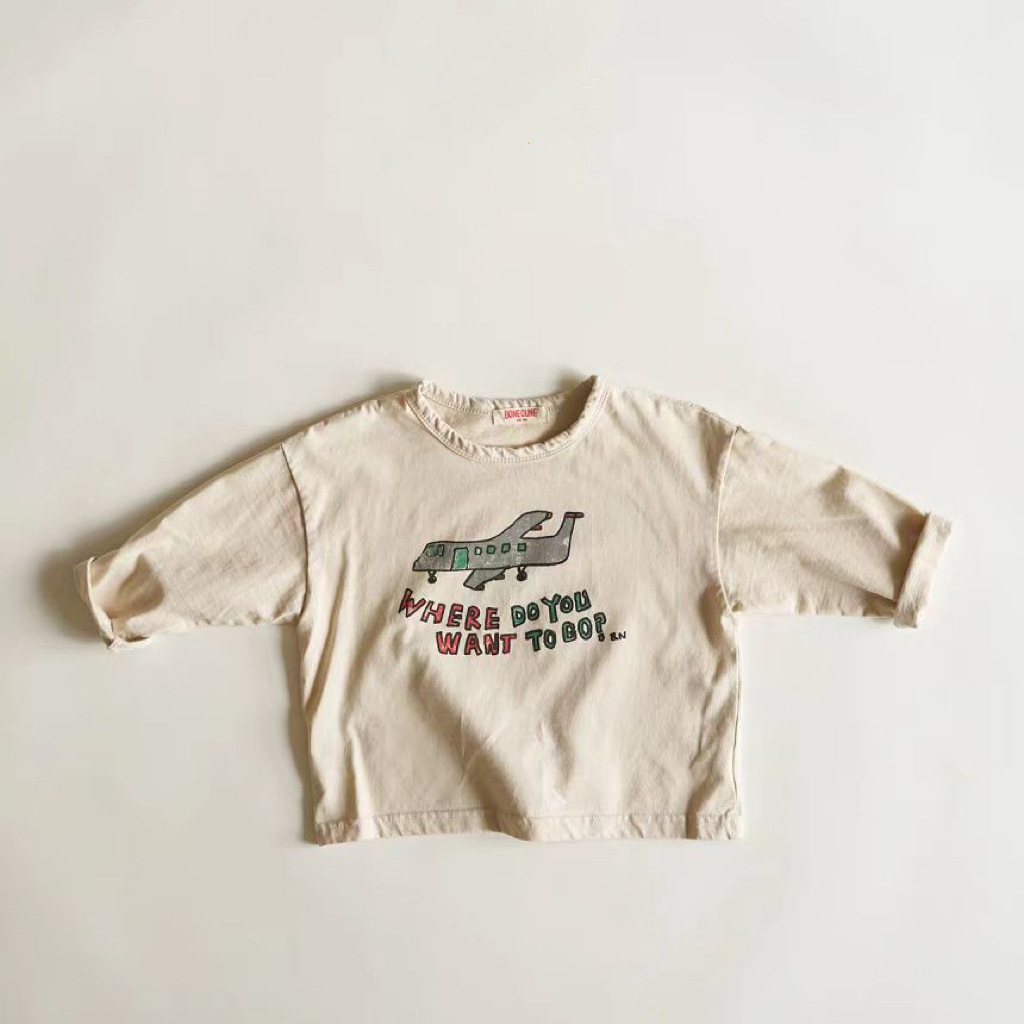 소년 소녀를위한 새로운 느슨한 한국식 탑 봄과 가을 긴팔 티셔츠 항공기 패턴 인쇄스토어 가기