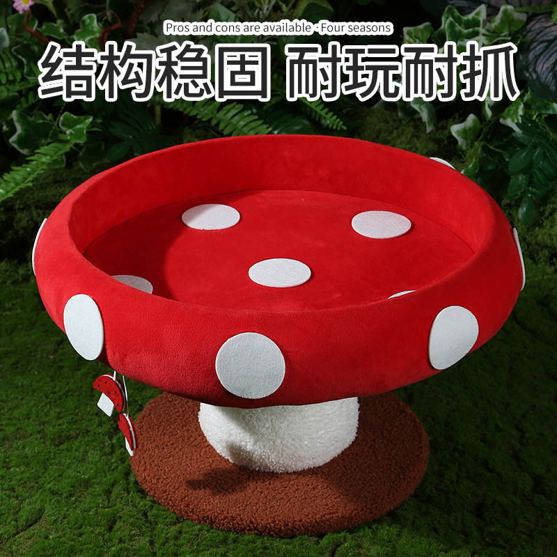 고양이 둥지 겨울 두꺼운 따뜻한 붉은 버섯 집 고양이 등반 프레임 열 애완 동물 침대 고양이 나무 통합 플랫폼 고양이 둥지스토어 가기