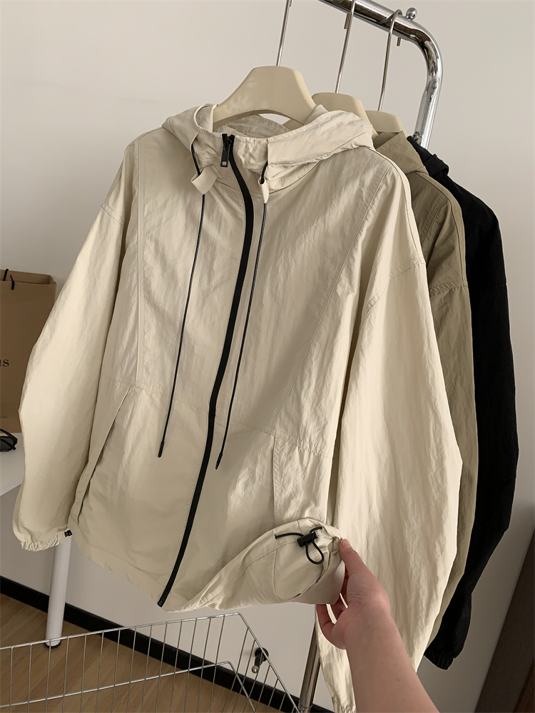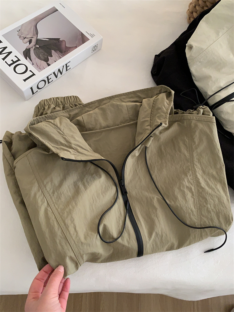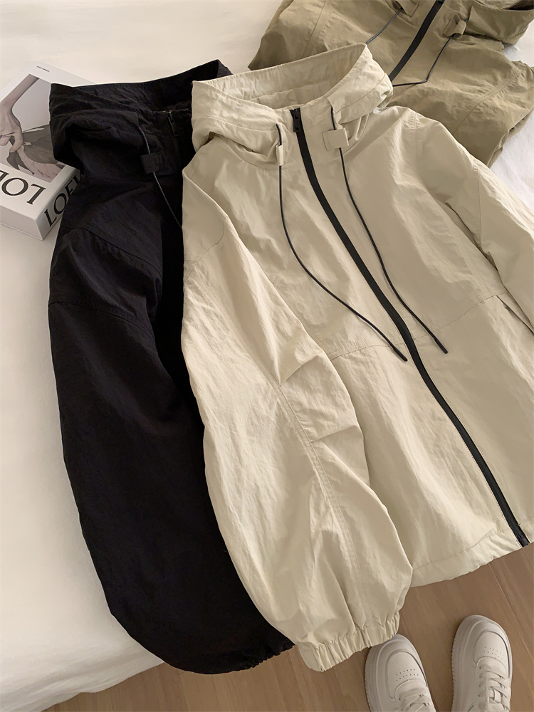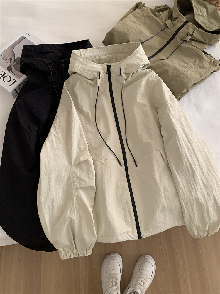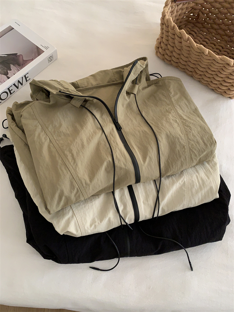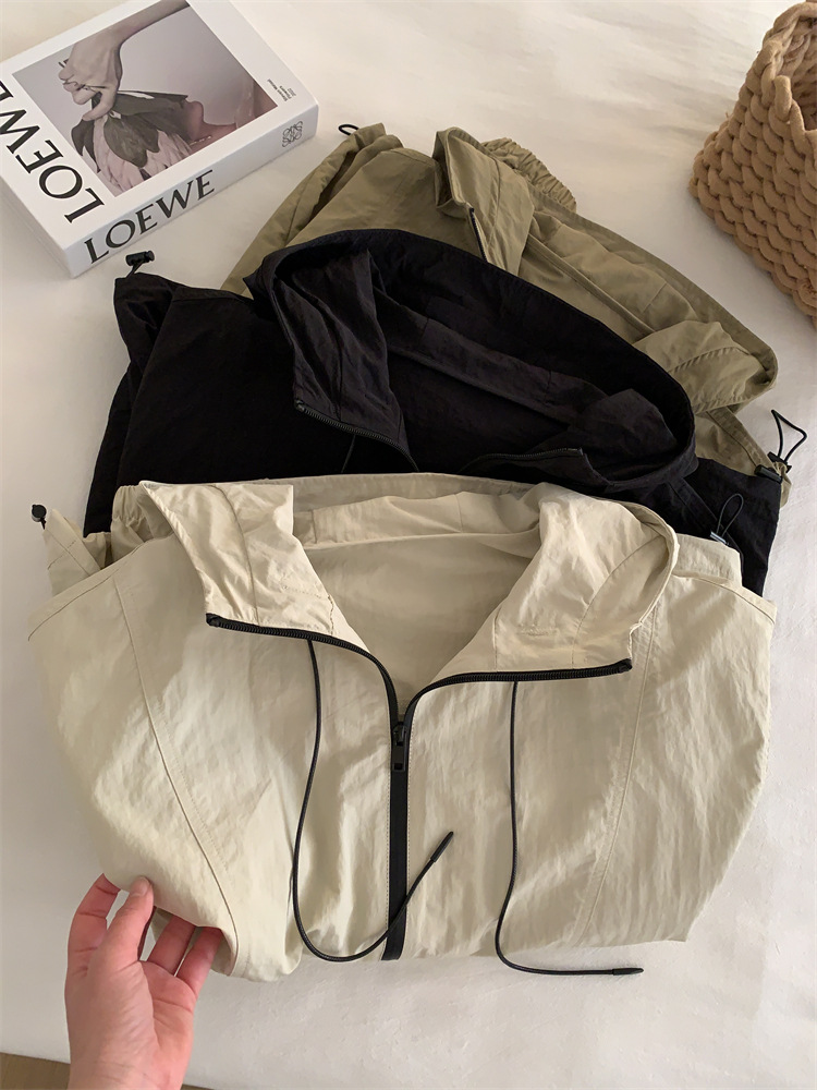 후드 자켓 여성의 봄과 가을 새로운 한국 스타일 느슨한 슬리밍 캐주얼 올 매치 컬러 매칭 지퍼 재킷 탑스토어 가기