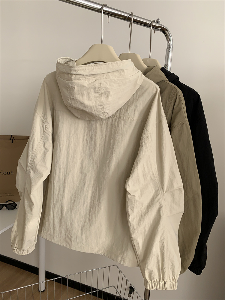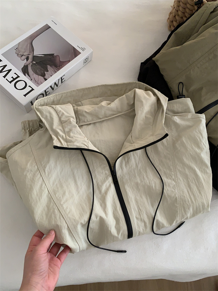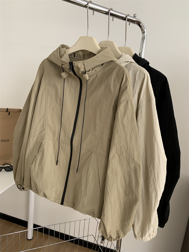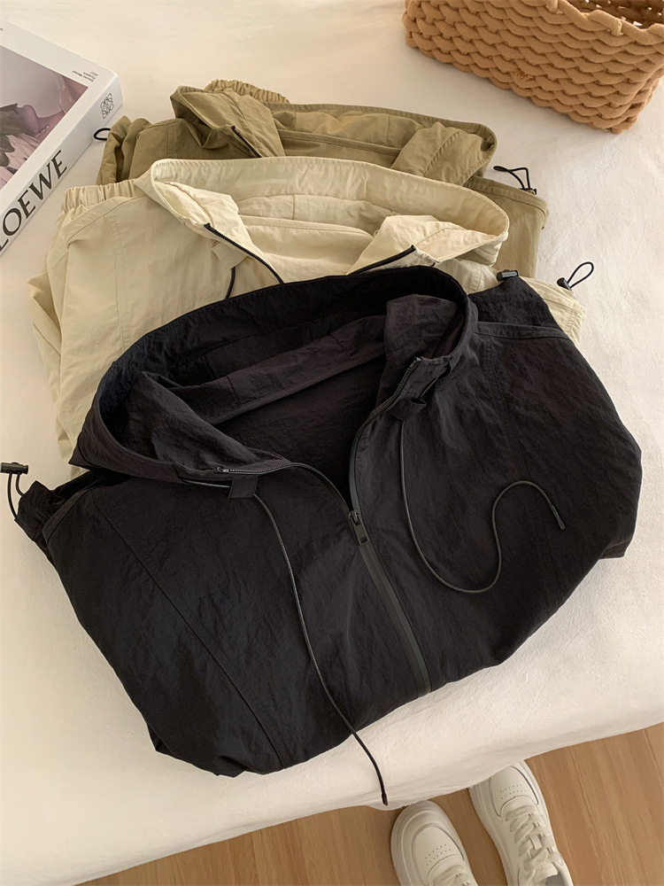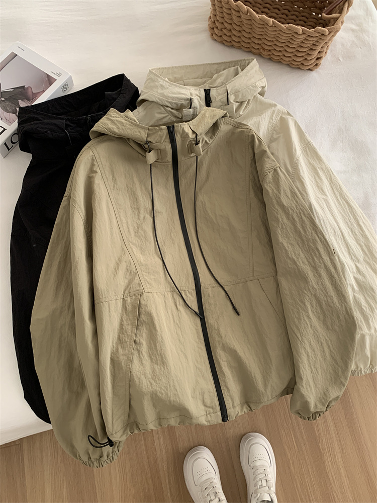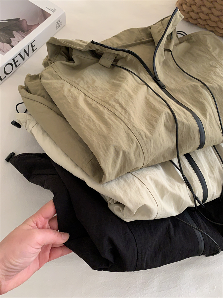 후드 자켓 여성의 봄과 가을 새로운 한국 스타일 느슨한 슬리밍 캐주얼 올 매치 컬러 매칭 지퍼 재킷 탑스토어 가기