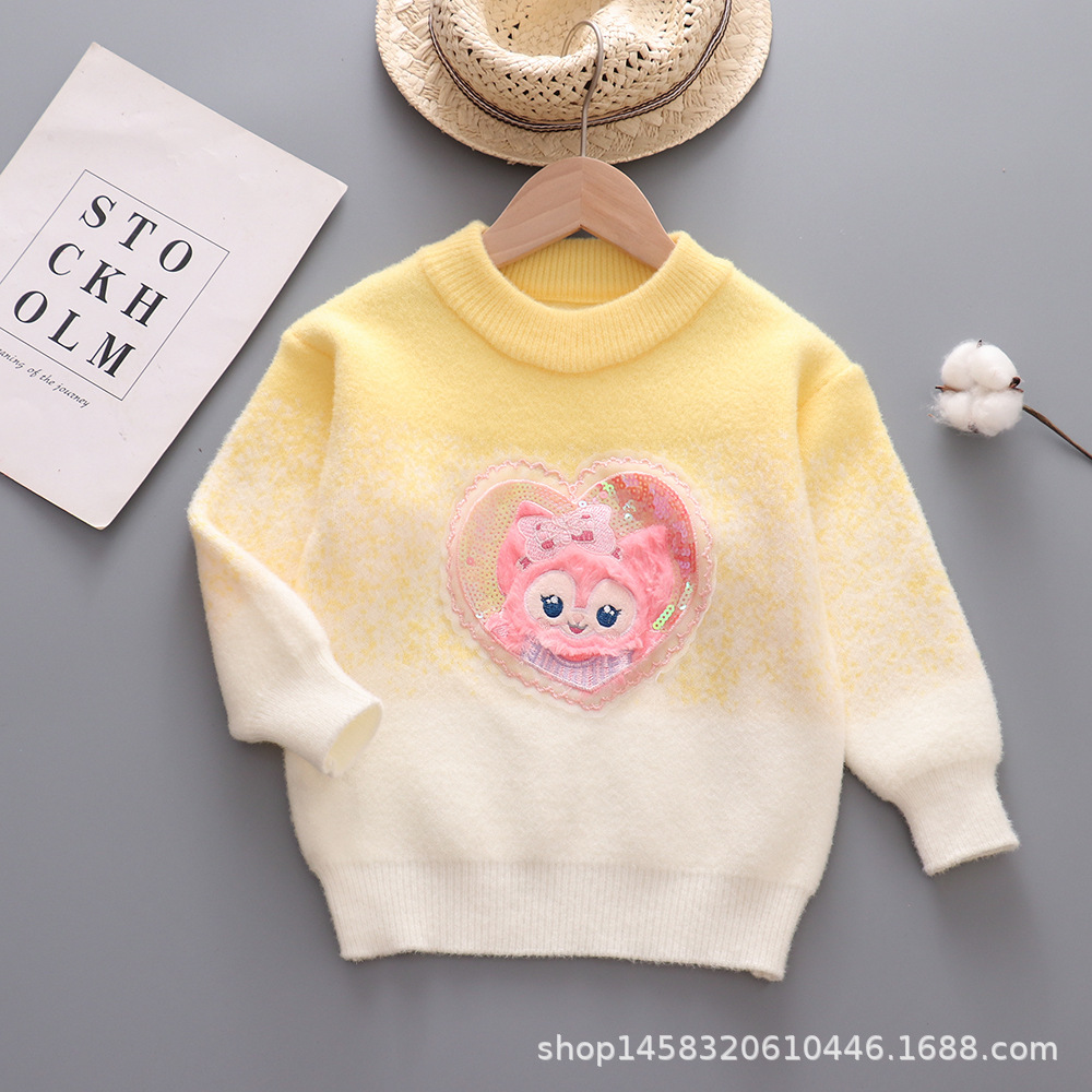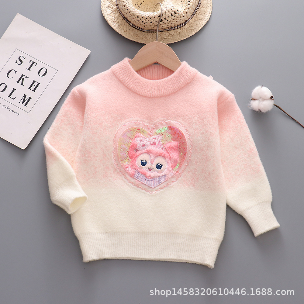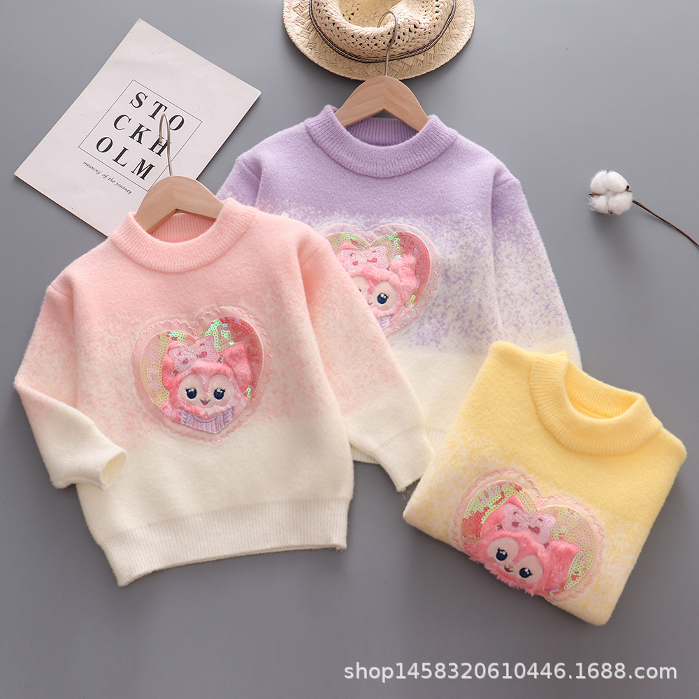 여자 스웨터 한국 벨벳 라운드 넥 가을과 겨울 긴 소매 두꺼운 니트 셔츠 자수 여우 어린이 탑