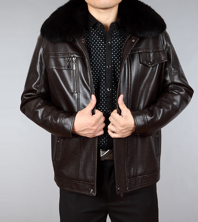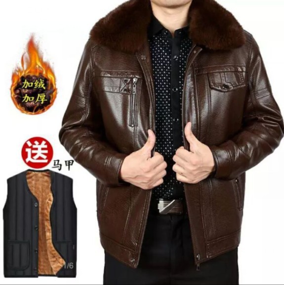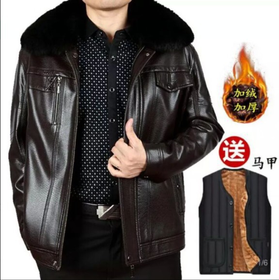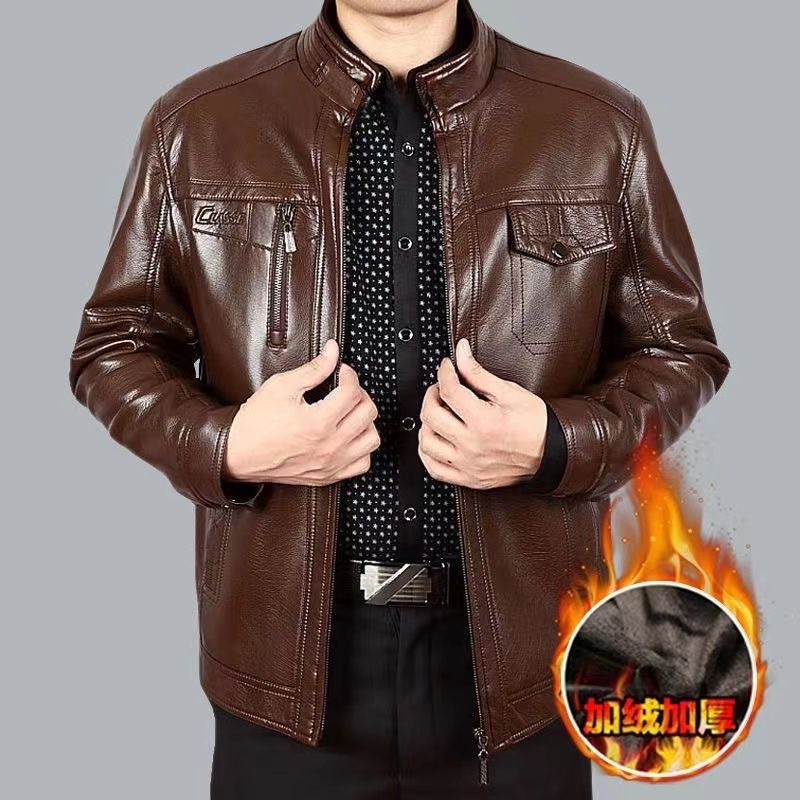 아빠 가죽 자켓과 벨벳 코트 중년 남성 가죽 자켓 겨울 두꺼운 중년 가죽 남성 도매스토어 가기