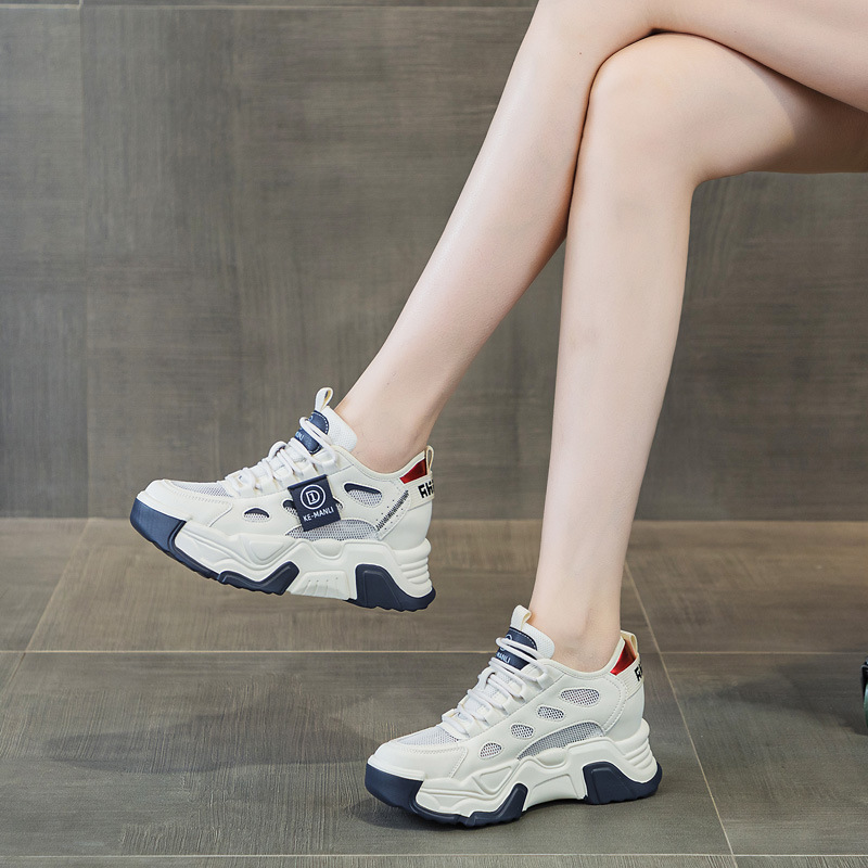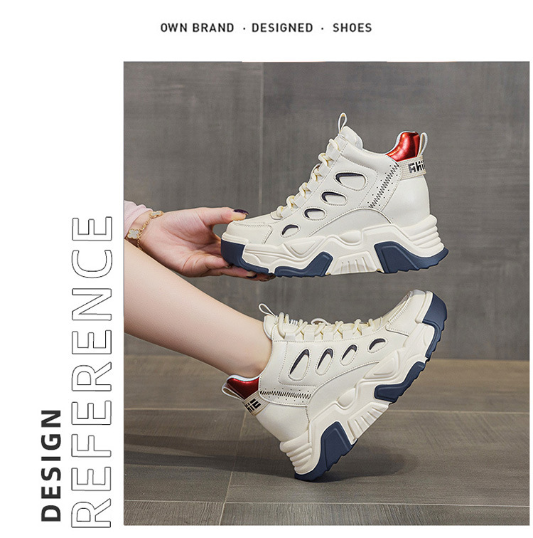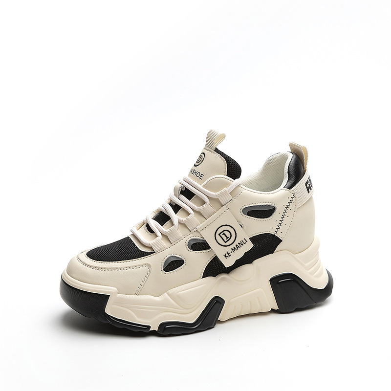 2024 가을과 겨울 여성 신발 새로운 아빠 신발 미드 탑 올 매치 편안한 머핀 두꺼운 바닥 증가 캐주얼 신발 기모
